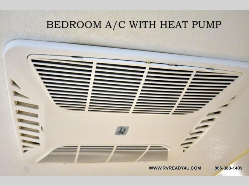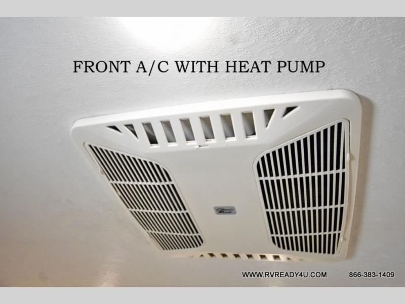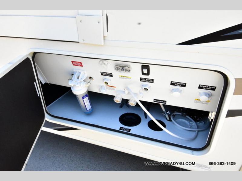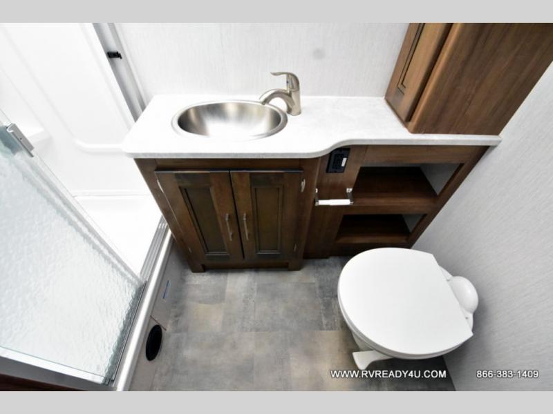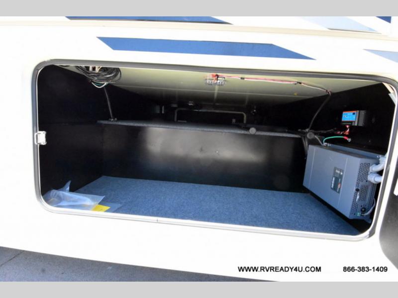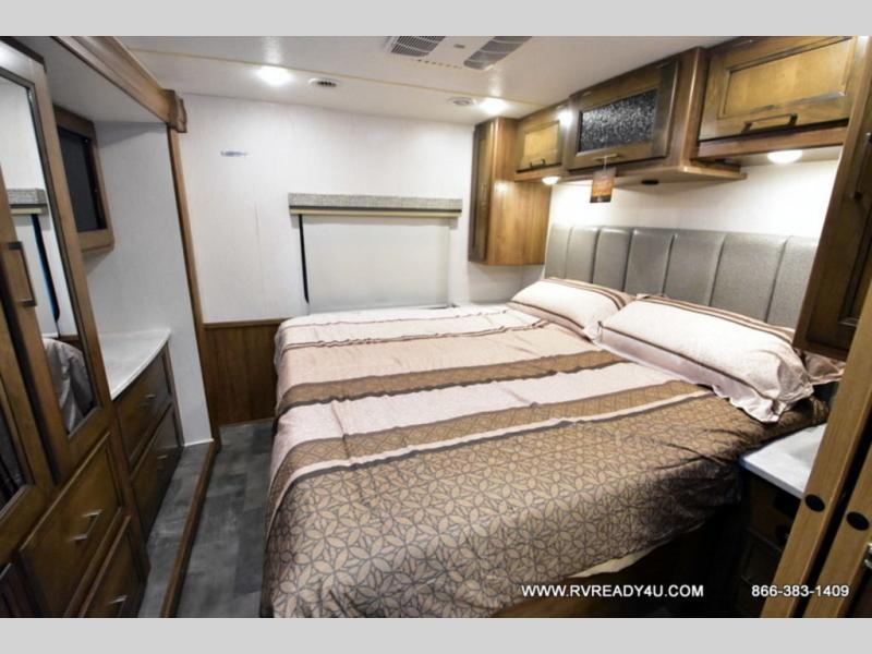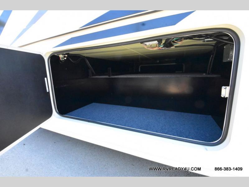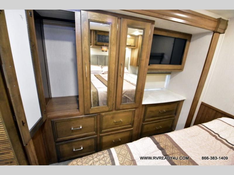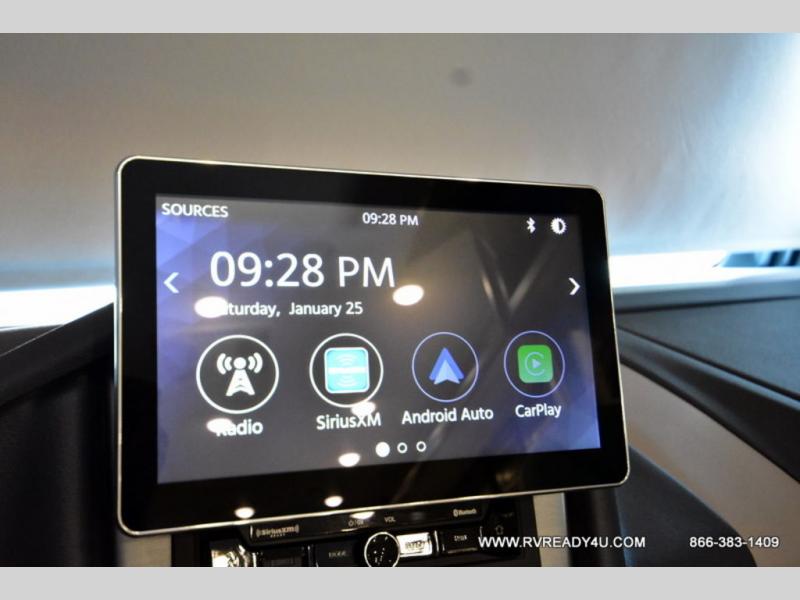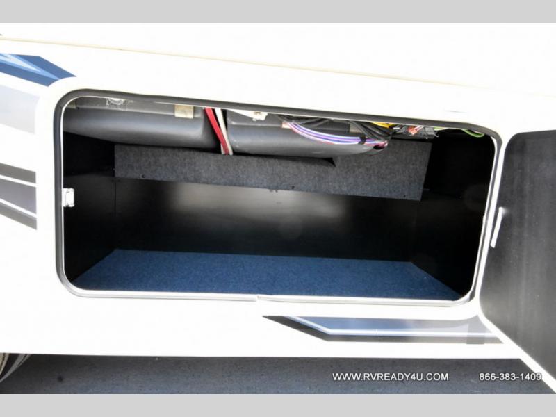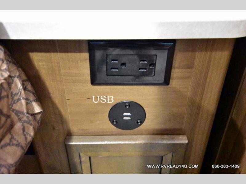 Choose to travel with your spouse and family in this coach because you will have lots of floor space inside thanks to the full wall slide plus the second slide in the main living/kitchen area. You can stretch out your legs on the sofa bed, the booth dinette as well as on the theater seats and the recline/swivel pilot seats. You might even choose the power theater seating option if you like. The cook will love the farm sink, the solid surface countertops and the stainless steel appliances to make meals for everyone. There is another option, add a washer/dryer to the prepped space if you prefer your clothing to be clean the whole trip. And your bedroom will have a walk-around king bed to sleep comfortably at night, and you will find plenty of storage for all your clothing and such.