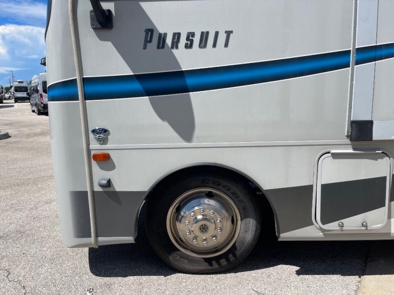 This Coachmen Pursuit motorhome is perfect for a family or group of friends up to eight individuals. You have a RV king bed in the rear private bedroom which also has access to the dual entry bath, a 68" sofa with storage, a booth dinette, and a drop down bunk above the cab. There are even bunk beds with a wardrobe the kids are sure to love! There are not only places for your family to sleep, but there are also plenty of places for storing their things while you are away on vacation. Plus, there is entertainment for everyone between the LED TV in the living room, the 32" LED TV in the bedroom, and the exterior LED TV!
