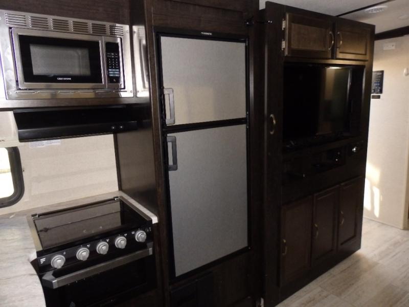 The large slide-out opens up the main living area, giving you more room to lounge, dine, and entertain in comfort. -