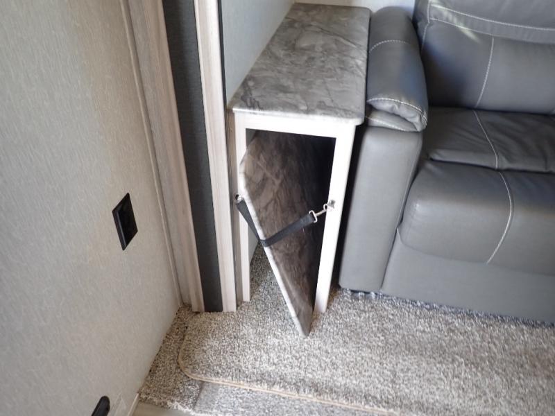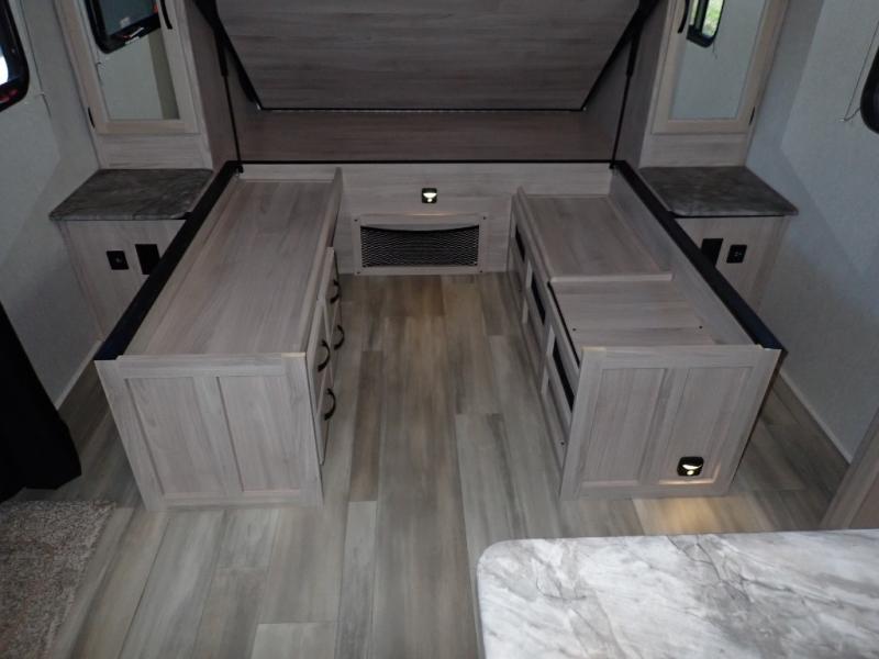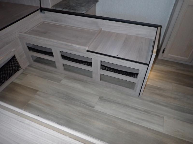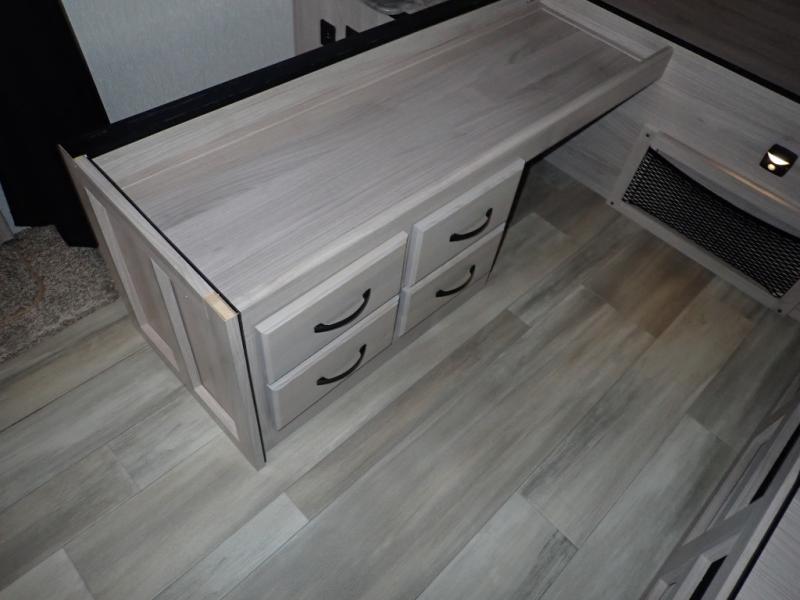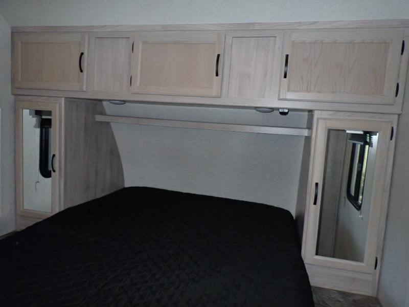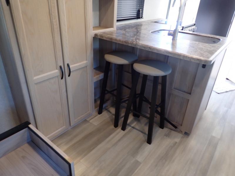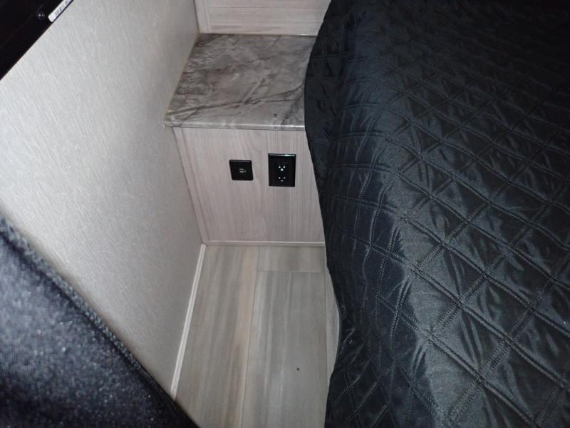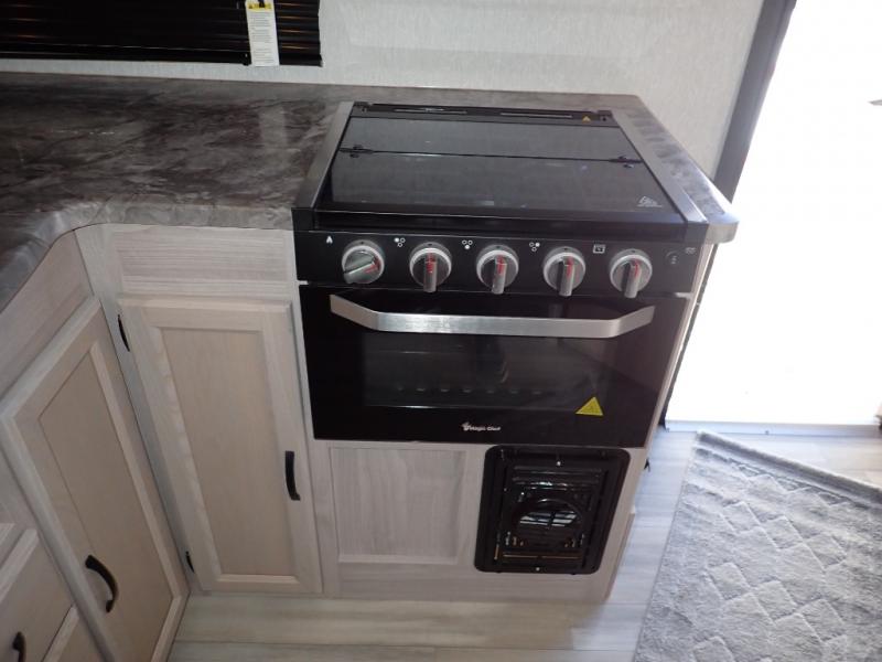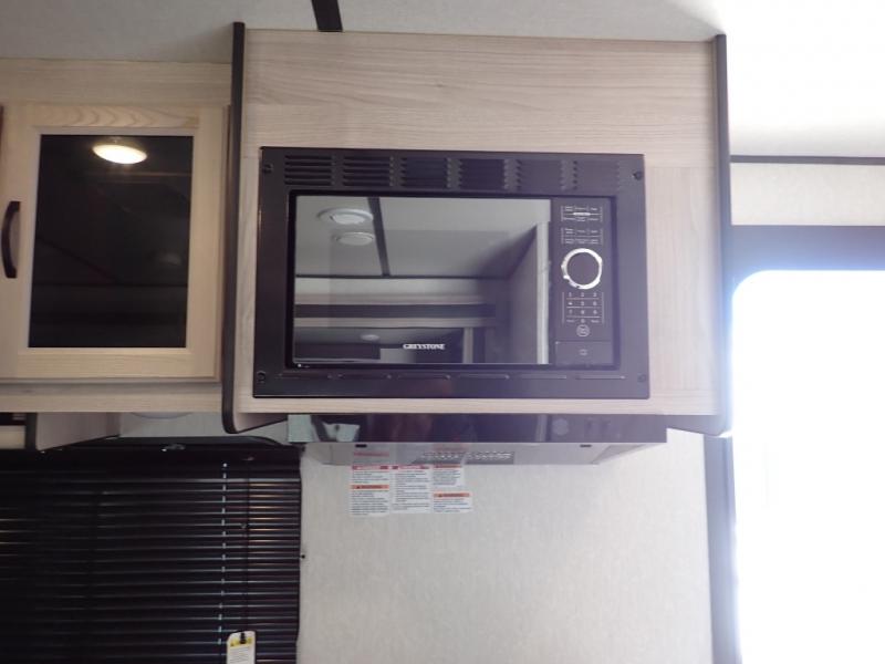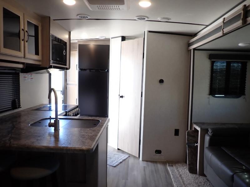 This perfect couple's Spirit Ultra Lite travel trailer offers a spacious interior with a slide out and everything you need to eat, sleep, and relax in comfort! The full kitchen with its three-burner range top and microwave will be extremely helpful each morning as you prepare a batch of pancakes and a pan of bacon. You will be grateful for the radius shower in the full bathroom so that you can easily get cleaned up and prepared for the day ahead. The sofa slide is convenient because it extends out which means that you have more interior living space, and the two end tables will be perfect for holding drinks and snacks as you sit and relax on the sofa.