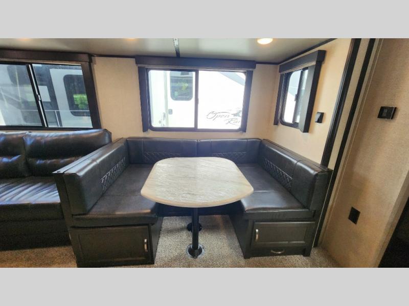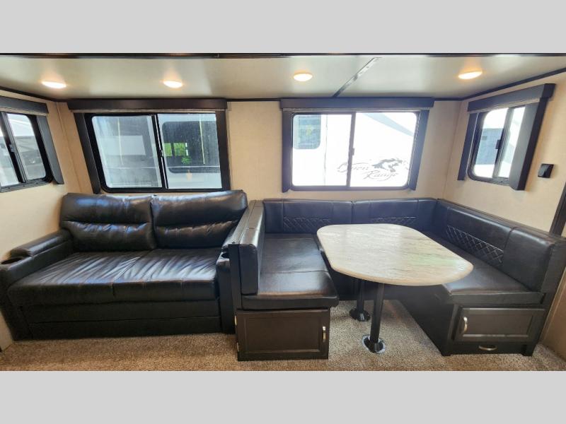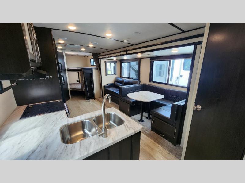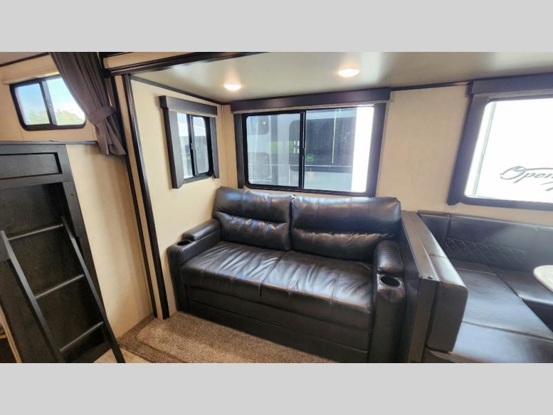 This Spirit Ultra Lite travel trailer offers you double-size bunk beds with two kids' convenience centers, a large slide that gives you more living space, and a U-shaped dinette and sofa that give you more sleeping space. If you flip up the lower double-size bunk in the rear, you will find extra storage with access from the exterior so that you can bring along your bikes, folding chairs, or coolers. The dual entry doors conveniently allow you to access the main living area or the full bathroom from outside so that you can get in and out without missing any of the fun. This model also includes Max Bed storage, an entry tool center, and plenty of exterior storage in the pass-through storage center.