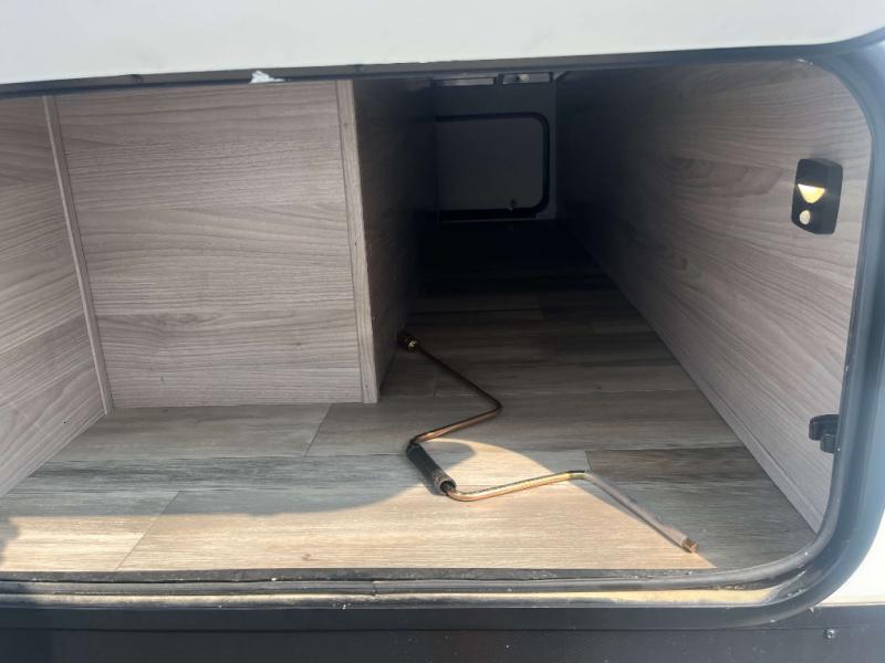 A spacious couples trailer with a MAX BED storage area, a bathroom wardrobe, a pantry, and an exterior pass-through compartment with motion activated light make this unit the one! The exterior dog leash clip and dog wash will come in handy when you bring your family pet, plus the power awning and outside camp kitchen give you more outdoor time! The rear bathroom allows you privacy to get cleaned up in your own trailer, the oversized U-shaped dinette slide offers indoor dining and relaxation while watching the LED TV, and the kitchen amenities are ready when you are!