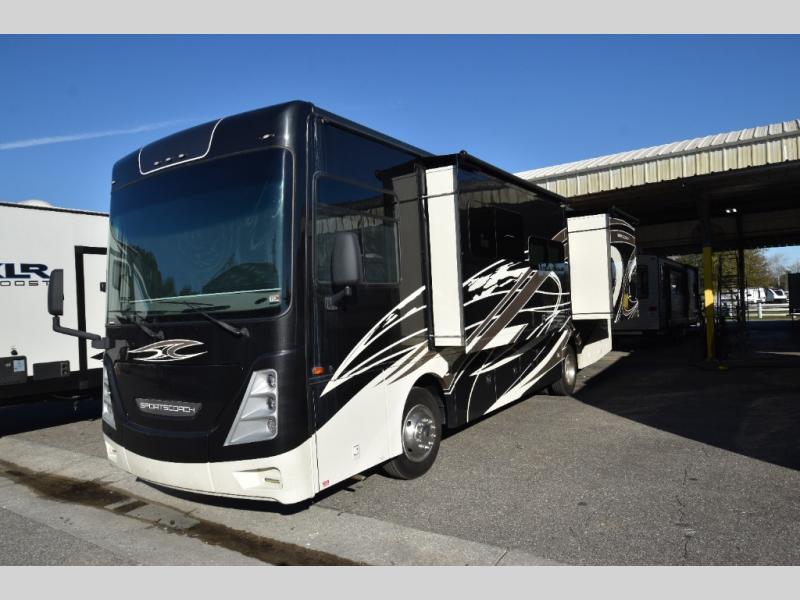 Why not enjoy the journey as much as the destination? Each Sportscoach SRS class A diesel coach gives you the Coachmen Advantage providing a smooth ride with chassis air suspension and air brakes on a straight line Freightliner chassis. The dashboard monitor with rear and side color cameras makes backing up and navigating tight spaces easy, while the fully automatic leveling jacks make setting up a breeze. You will appreciate the self-closing ball bearing drawer guides and upgraded linoleum throughout, the pop-up receptacle with USB ports in the galley to keep all the electronics ready for the next activity, and the residential-style headboard and upgraded mattress. Choose the floorplan that works for your traveling lifestyle!