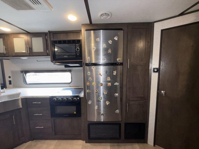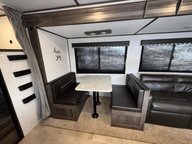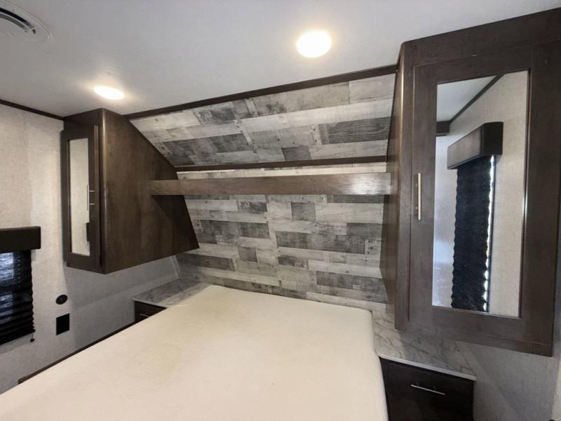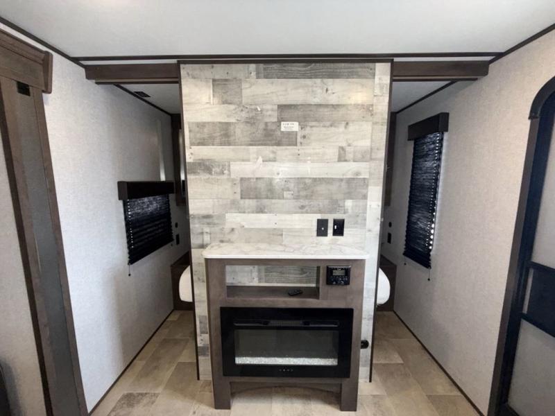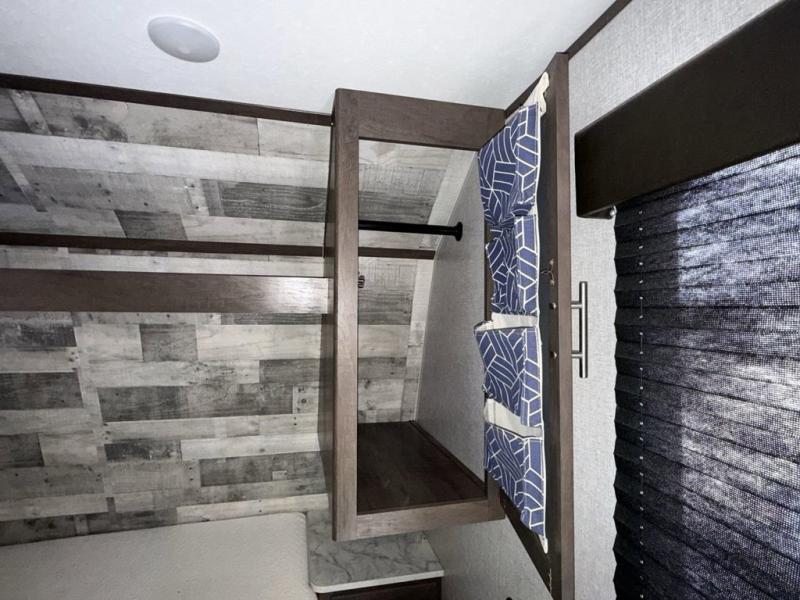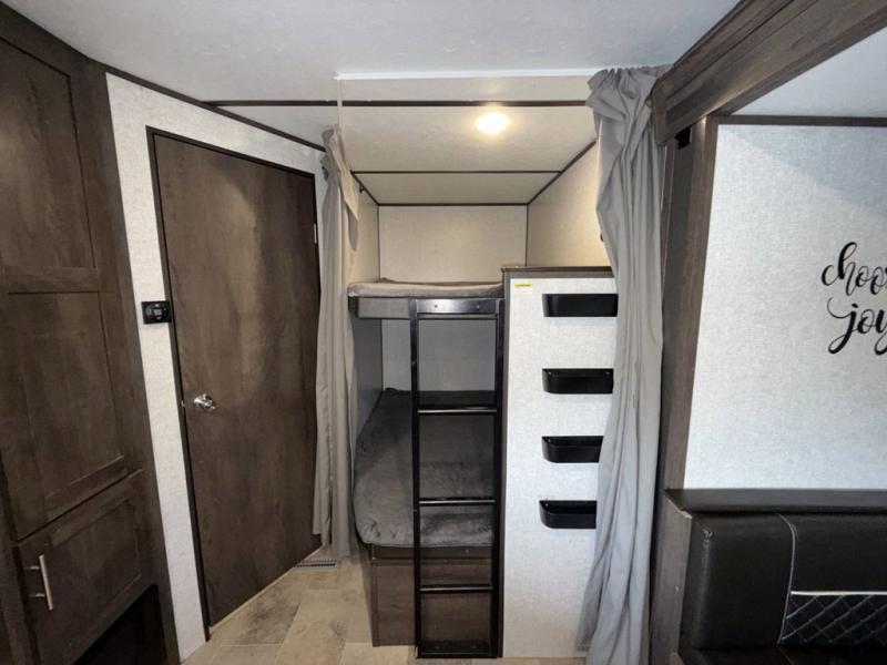 This Coleman Lantern Series travel trailer will provide you and your family with comfort and convenience while you enjoy the great outdoors. You might even meet other RV owners to camp with as well. From having your own private bedroom with wardrobe space and USB power outlet to your kids having double-size bunks, you will not be missing home at all. The cook can make meals while the others take turns getting ready in the full bathroom, and the second exterior entry door into the bathroom is a huge convenience for many reasons. Make this model yours today!