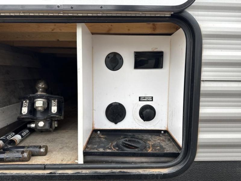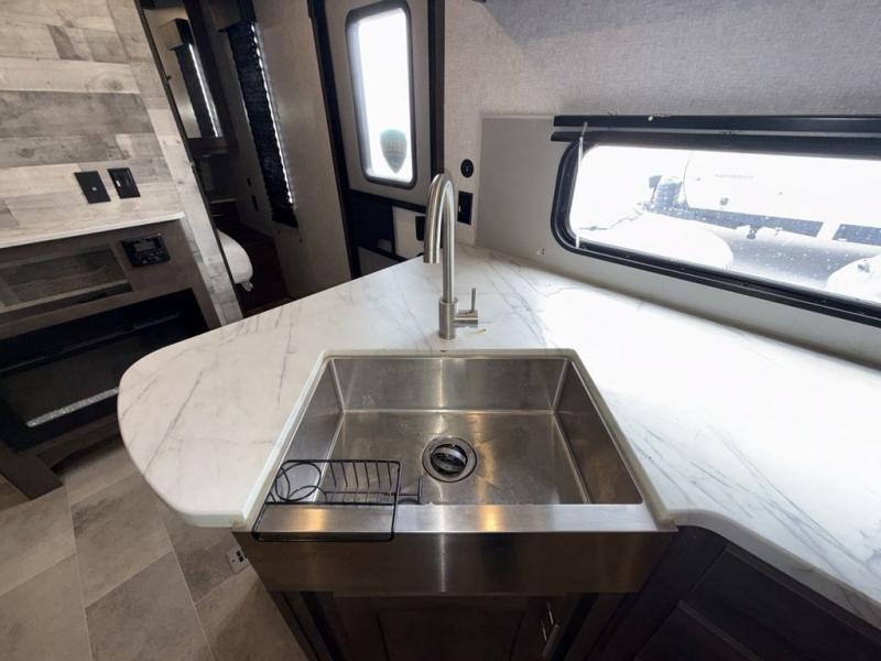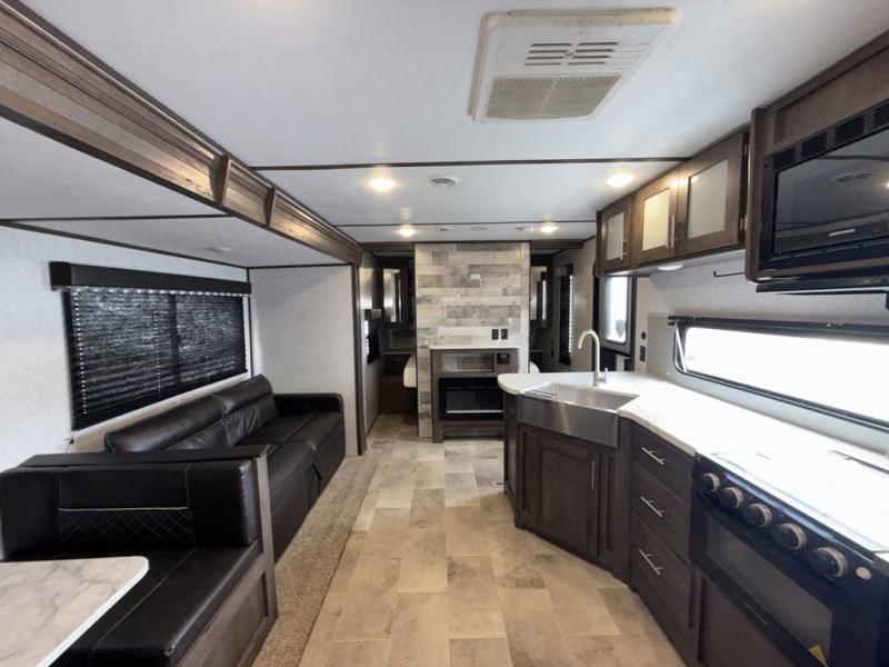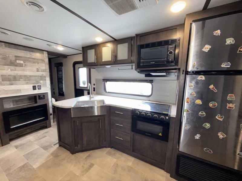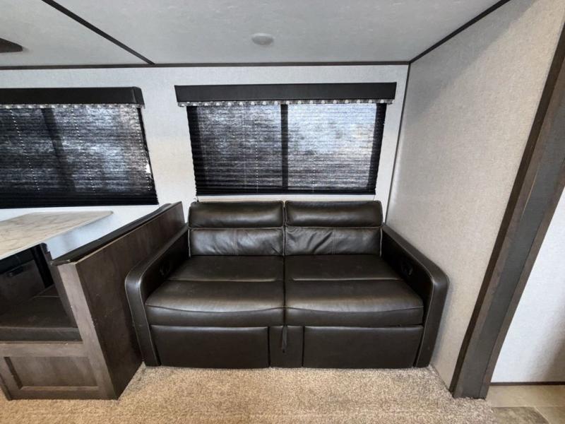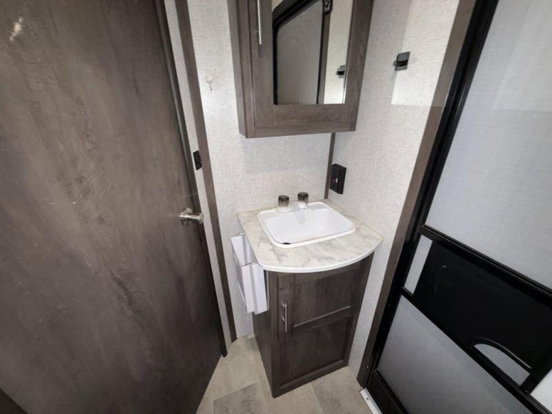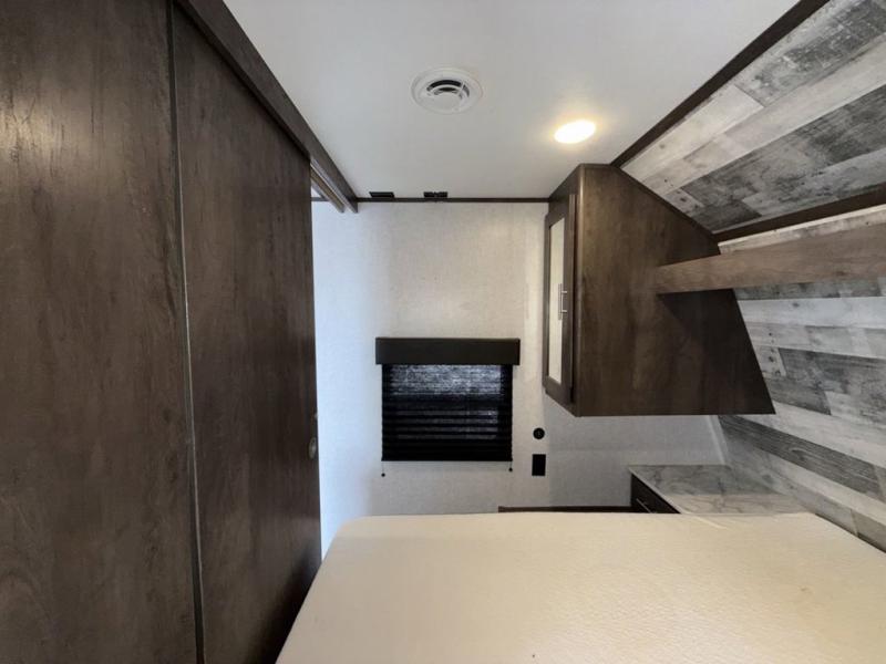 This Coleman Lantern Series travel trailer will provide you and your family with comfort and convenience while you enjoy the great outdoors. You might even meet other RV owners to camp with as well. From having your own private bedroom with wardrobe space and USB power outlet to your kids having double-size bunks, you will not be missing home at all. The cook can make meals while the others take turns getting ready in the full bathroom, and the second exterior entry door into the bathroom is a huge convenience for many reasons. Make this model yours today!