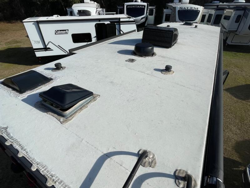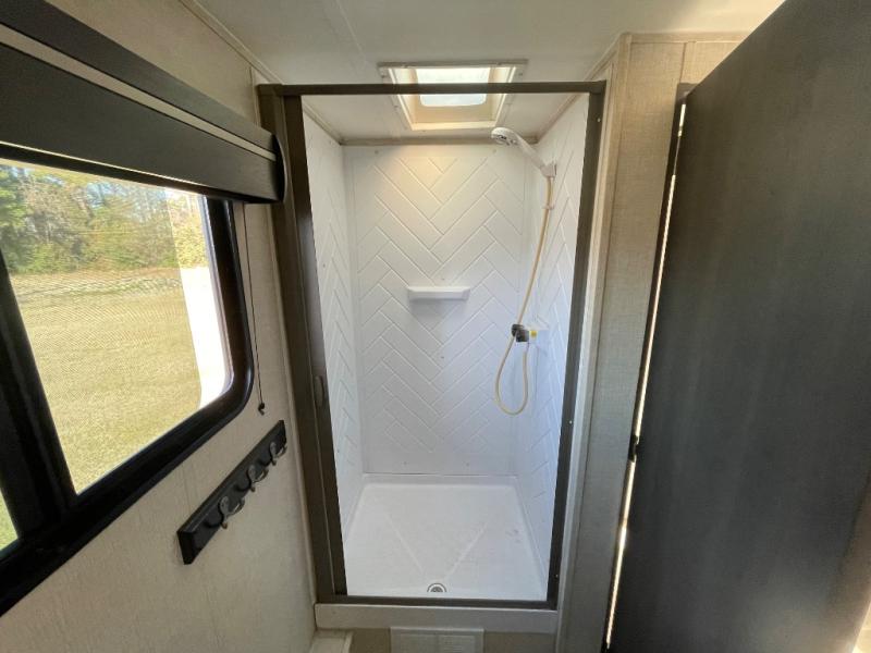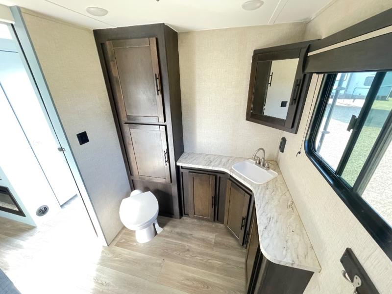 The CrossRoads RV Cruiser Aire fifth wheels and travel trailers have been made with your needs in mind. You will find many conveniences to make camping easier than ever, including Secure Stance entry steps, a Keyed-A-like lock system, a friction hinge entry door with a window, and more! The one piece seamless Super Flex roof includes a rear roof ladder so you can easily clean the top of your unit after a weekend in the woods. You can easily bring along all of your necessities with convenient storages spaces, like the full truck under-bed storage, the spacious bedroom closets, and the exterior heated pass-through storage. The high-rise faucet in the kitchen will make clean-up a breeze, and the hardwood cabinet doors will give that extra touch-of-home!