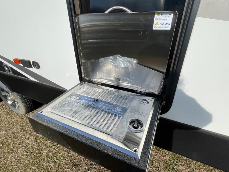 Your family or group of friends will love camping in this spacious travel trailer. The large slide out provides more space to let the dog nap on the floor, and the U-shaped dinette and tri-fold sofa here can double as their sleeping space at night. The chef of the family will have their choice to cook indoors, or outdoors on the outside kitchen, plus there is a power awning with LED lights to provide protection from the elements. Everyone can easily clean up in the spacious full rear bath that includes plenty of counter space and a closet that has been prepped to add an optional washer and dryer for convenience.