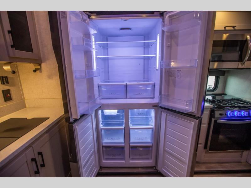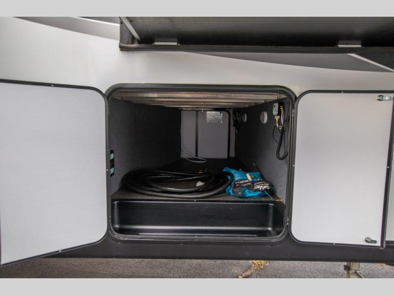 You will find conveniences throughout any one of these CrossRoads RV Cruiser fifth wheels! Starting from the outside with an easy winterization bypass, motion sensor lights, aluminum wheels with steel reinforced wheel wells, and a walk-on roof with ladder and bike rack. The luxurious interiors have a command panel with easy access switches, slide windows to create cross ventilation, and a CD/DVD player with HDMI to watch your favorite movies at night while relaxing on the Thomas Payne furniture. The painted aerodynamic fiberglass cap will turn heads at the campsite, and the secure stance steps will help you safely enter the unit while the Keyed-A-Like locks keep everything safe inside!