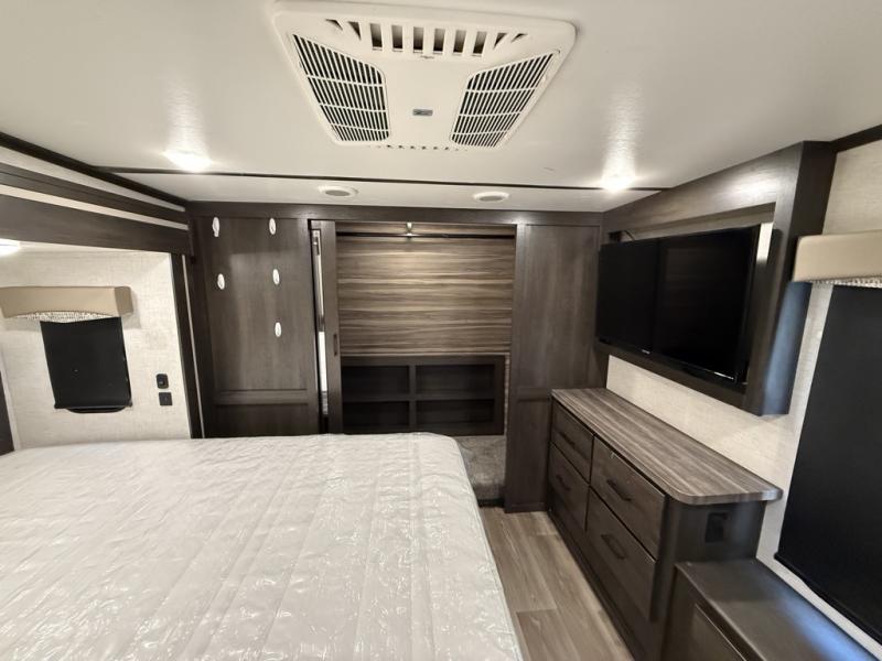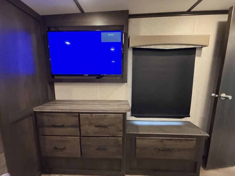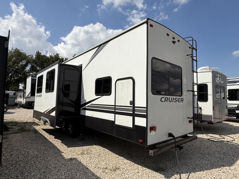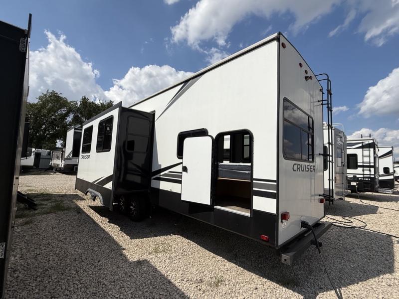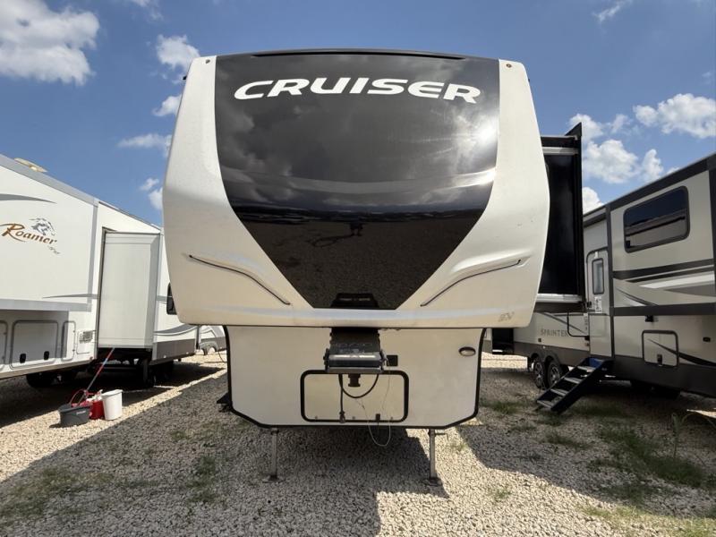 THIS BEAUTIFUL 2021 CROSSROADS CRUISER 3851BL IS A 5TH WHEEL LOADED WITH LUXURY!! 43 LONG. 5 SLIDES. 2 FULL BATHROOMS. KING MASTER SUITE. MASSIVE TRAILER. WITH WALK-IN CLOSET. WASHER/DRYER CONNECTIONS. SECOND ENTRY DOOR INTO BATHROOM. KING FRONT BEDROOM, QUEEN REAR BEDROOM WITH UPSTAIRS SLEEPING LOFT.