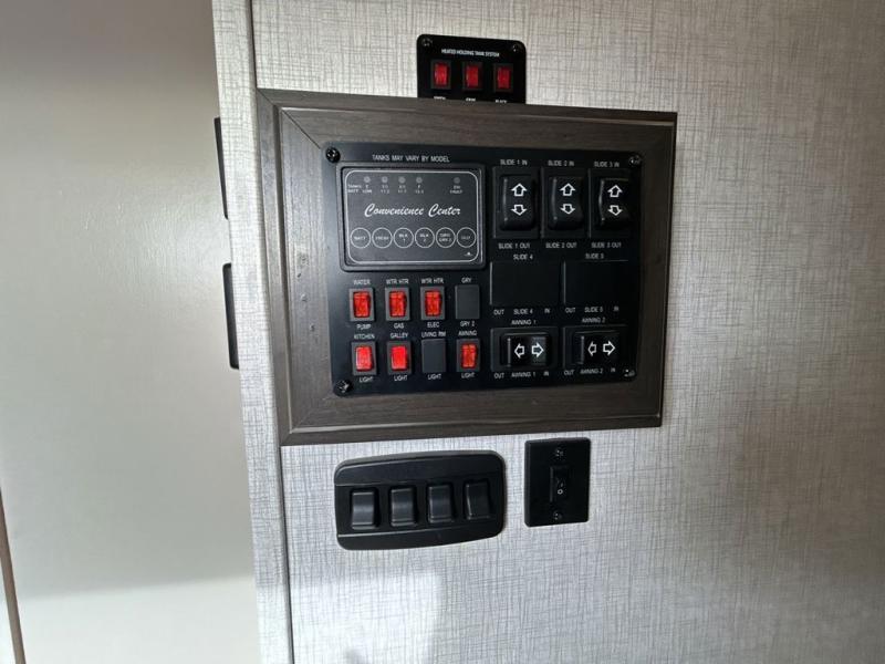 You will find conveniences throughout any one of these CrossRoads RV Cruiser fifth wheels! Starting from the outside with an easy winterization bypass, motion sensor lights, aluminum wheels with steel reinforced wheel wells, and a walk-on roof with ladder and bike rack. The luxurious interiors have a command panel with easy access switches, slide windows to create cross ventilation, and a CD/DVD player with HDMI to watch your favorite movies at night while relaxing on the Thomas Payne furniture. The painted aerodynamic fiberglass cap will turn heads at the campsite, and the secure stance steps will help you safely enter the unit while the Keyed-A-Like locks keep everything safe inside!