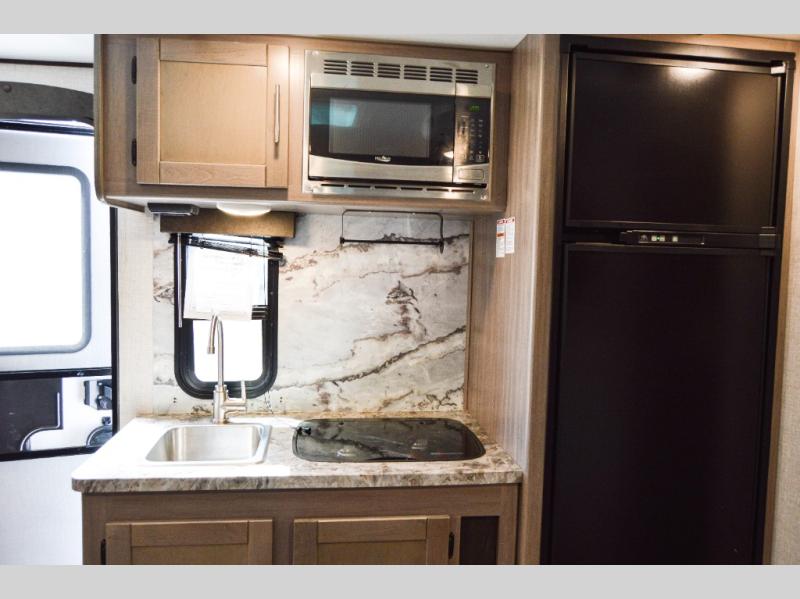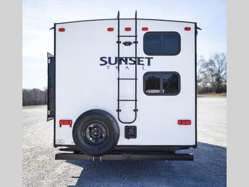 The lightweight Sunset Trail travel trailers by CrossRoads RV include EZ lube axles, laminated sidewalls, secure stance entry steps, plus an exterior convenience center to make each camping trip enjoyable. The gas oven, stainless steel microwave, and refrigerator allow you to cook and store food during your trip to the lake, and the stainless steel farmhouse sink will make clean-up a breeze. These models feature solid wood drawer construction and LED lights for an open and bright living space. You can choose to add many convenient options, such as the optional 50 amp electrical service, a second 13,500 BTU A/C, and a free-standing table and chairs in place of the booth dinette!