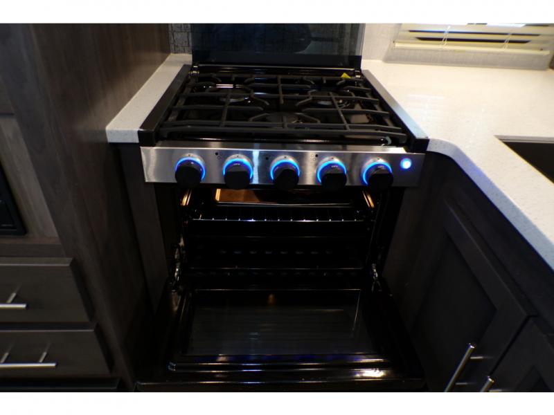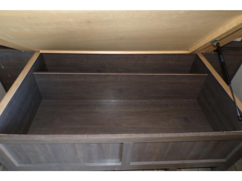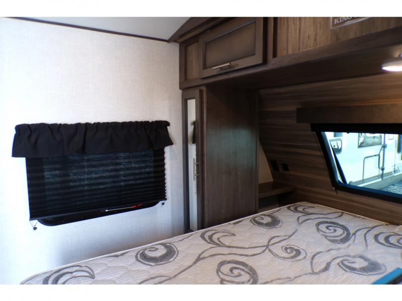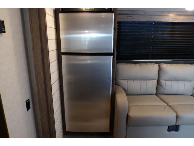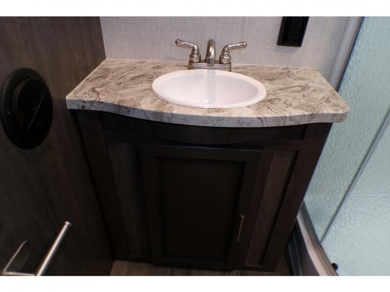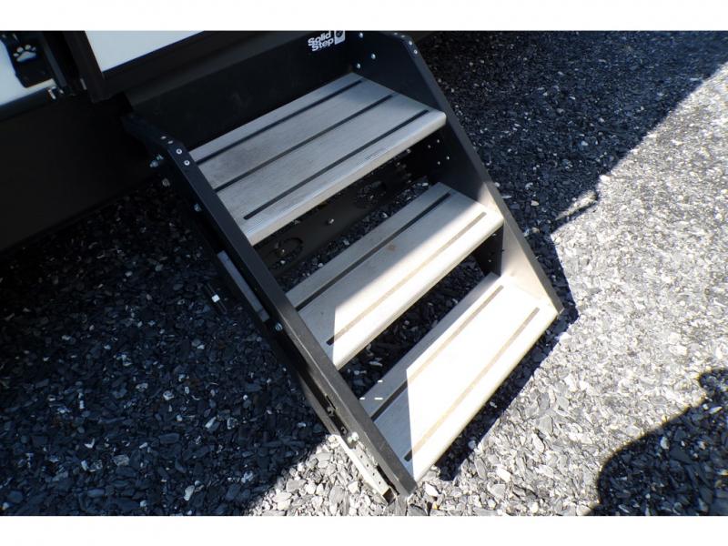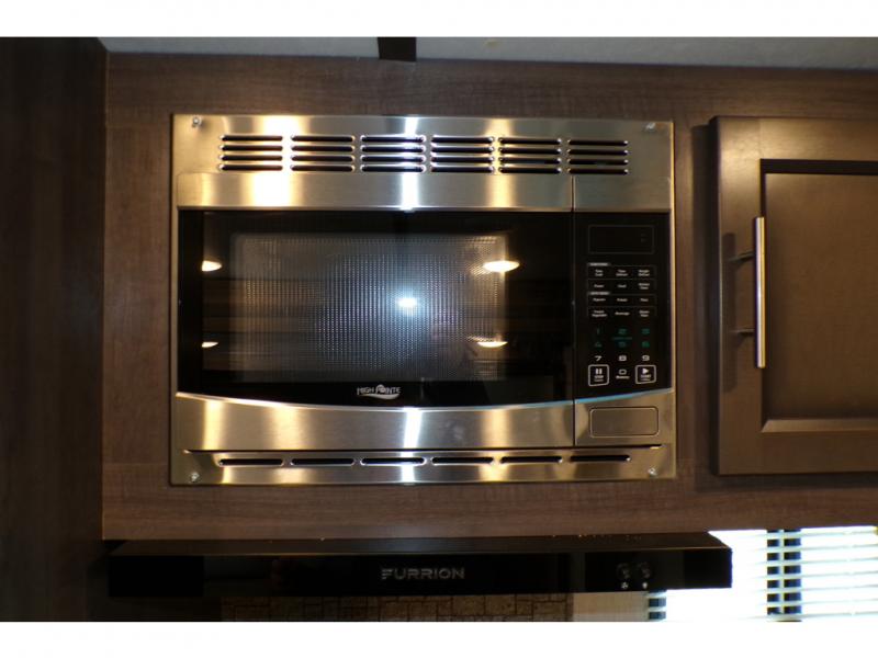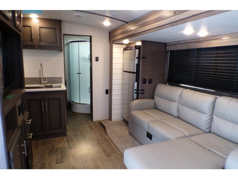 It's time to upgrade your RV to this spacious travel trailer! The slide out in the main living area will provide the dog space to stretch out, and within the slide out you'll find the tri-fold sofa/chaise lounge for your comfort. The full rear bath is both spacious and convenient with its shower skylight, medicine cabinet, and linen closet for clean towels. Head to the kitchen to prepare lunch on the glass top range or take your preparations outside to cook on the exterior camp kitchen. This model also features a front private bedroom with a king bed, dual wardrobes, plus a shoe storage and pet station for your loyal buddy!