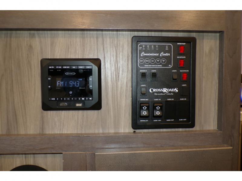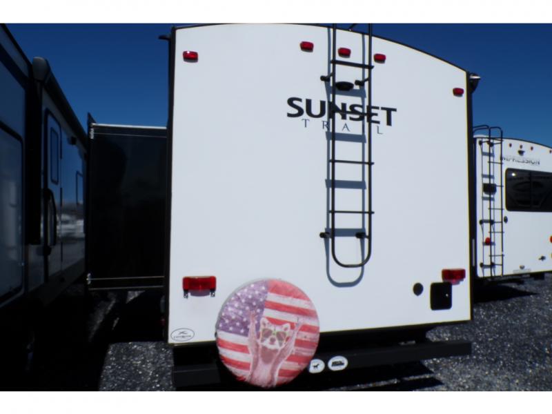 The lightweight Sunset Trail travel trailers by CrossRoads RV include EZ lube axles, laminated sidewalls, secure stance entry steps, plus an exterior convenience center to make each camping trip enjoyable. The gas oven, stainless steel microwave, and refrigerator allow you to cook and store food during your trip to the lake, and the stainless steel farmhouse sink will make clean-up a breeze. These models feature solid wood drawer construction and LED lights for an open and bright living space. You can choose to add many convenient options, such as the optional 50 amp electrical service, a second 13,500 BTU A/C, and a free-standing table and chairs in place of the booth dinette!