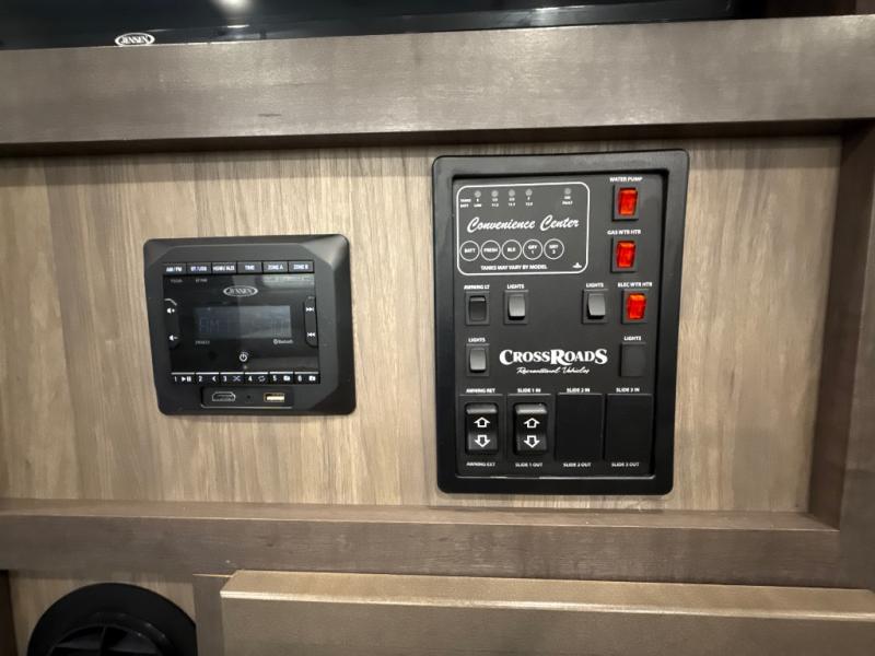 The lightweight Sunset Trail travel trailers by CrossRoads RV include EZ lube axles, laminated sidewalls, secure stance entry steps, plus an exterior convenience center to make each camping trip enjoyable. The gas oven, stainless steel microwave, and refrigerator allow you to cook and store food during your trip to the lake, and the stainless steel farmhouse sink will make clean-up a breeze. These models feature solid wood drawer construction and LED lights for an open and bright living space. You can choose to add many convenient options, such as the optional 50 amp electrical service, a second 13,500 BTU A/C, and a free-standing table and chairs in place of the booth dinette!