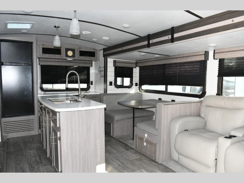 This Sunset Trail 285CK offers an ideal balance of space, comfort, and functionality. The rear kitchen and opposing slides make it perfect for extended stays, the king bed provides residential-level comfort, and the outside kitchen expands your living space outdoors. It’s a fantastic choice for families, couples, and full-time travelers looking for value, space, and proven durability.