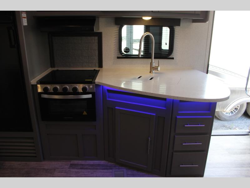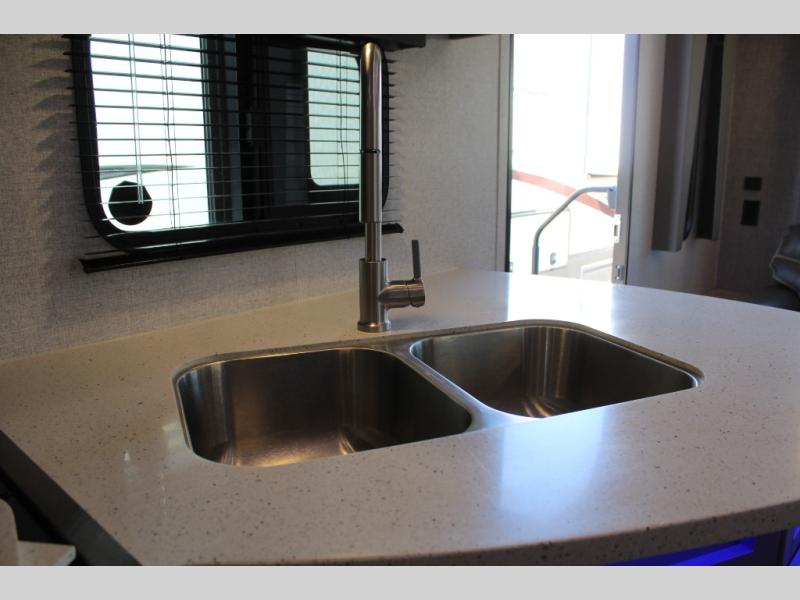 With each Volante travel trailer or fifth wheel by CrossRoads RV you will enjoy years of use and all-seasons camping with the fully enclosed and forced air heated underbelly. You'll appreciate USB ports for your tablet or phone, and each model features WiFi prep if you need to get some work done while away from home. These models include an XL 50/50 stainless sink in the kitchen, along with steel ball bearing drawer guides, and a 10.7 Cu. Ft. 12V refrigerator for all your perishables. The flush floor slide out in the living room with large dinette windows will provide a great view of the great outdoors, and you can jam to some tunes with the AM/FM Bluetooth sound bar. Take a look at the Volante today to find your favorite layout!