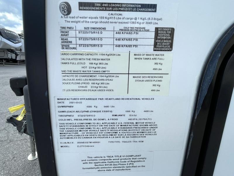 Used 2021 Cruiser Embrace EL275 Travel Trailer