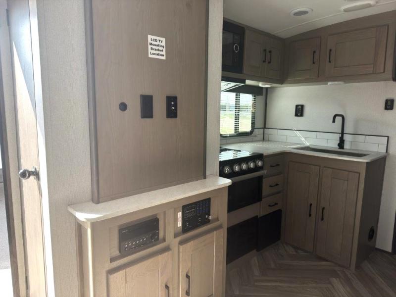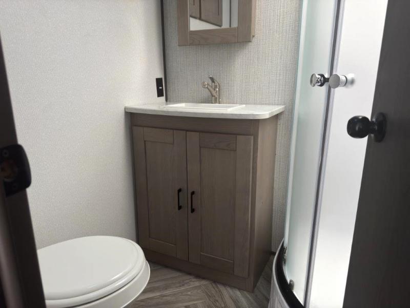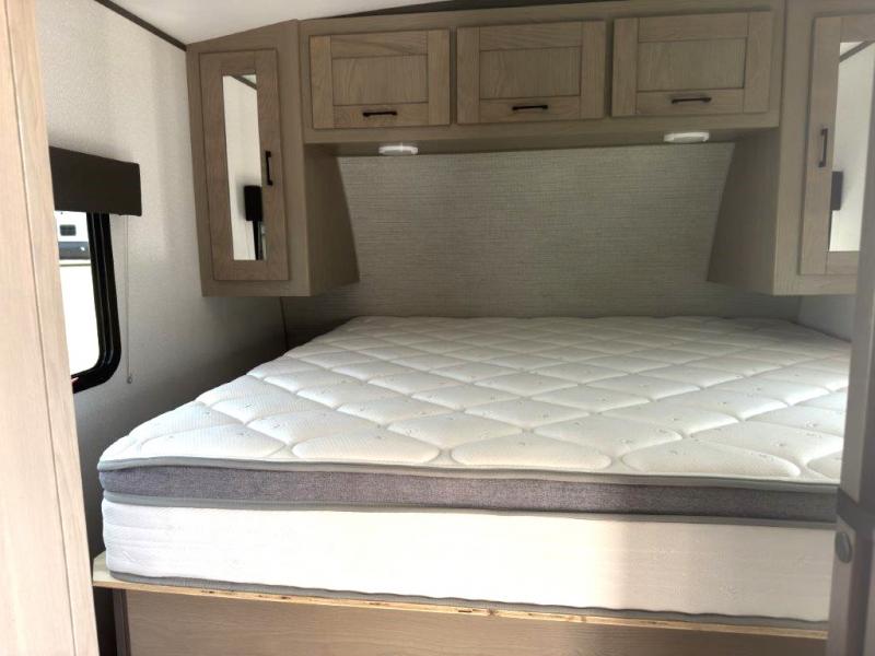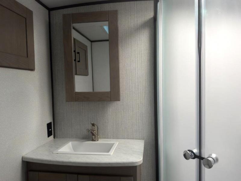 The chef will love having the choice to make meals inside with full amenities including a walk-in pantry/wardrobe by the entry, and outside at the outdoor kitchen with a griddle, sink, and storage. You and your spouse will love the spacious interior with a slide out including a U-shaped dinette and double door refrigerator, as well as the space savings sliding doors at the rear full bathroom and front private bedroom.