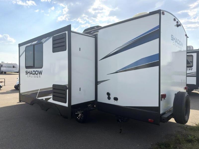 With each Cruiser RV Shadow Cruiser travel trailer you begin with a powder coated structural l-beam frame, three times the amount of required full-height cross members, solid entry steps, and power stabilizer jacks. They are also built with 5-sided aluminum framing and the extended season package with underbelly insulation for four seasons of traveling, plus a surround seal slide system with a rain gutter. The interior offers tongue and groove plywood floors, a double-down dual ducted A/C and a high BTU ducted furnace, plus a pet palace for your family's best friend. There are many more reasons to choose a lightweight Shadow Cruiser, make your choice and start having fun!