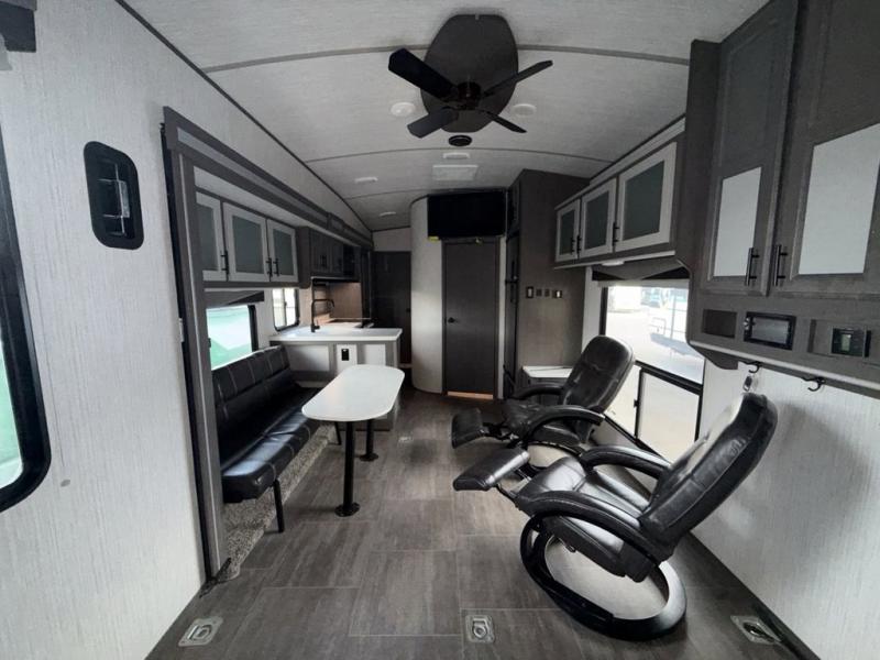 Each one of these Cruiser Stryker toy hauler travel trailers was built with you in mind to give you a functional and innovative design! With a Max Foundation wide-body construction, maximum storage, and an Extended Season package with radiant foil and 2" heat duct in an enclosed underbelly, you can bring along your four-seat side-by-side anytime of the year. They are designed by the off-road enthusiasts who understand what you need while playing in the dunes with heavy-duty axles that have easy-lube hubs and self-adjusting brakes and Azdel composite laminated sidewalls with five-sided aluminum framing. A couple other top-five interior features you will enjoy include a patent-pending king bed slide system, solar and Wi-Fi prep, double-down dual-ducted A/C, and a high-BTU ducted furnace, so you will feel just right in any season!