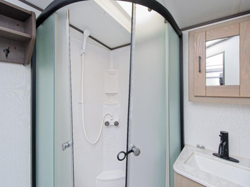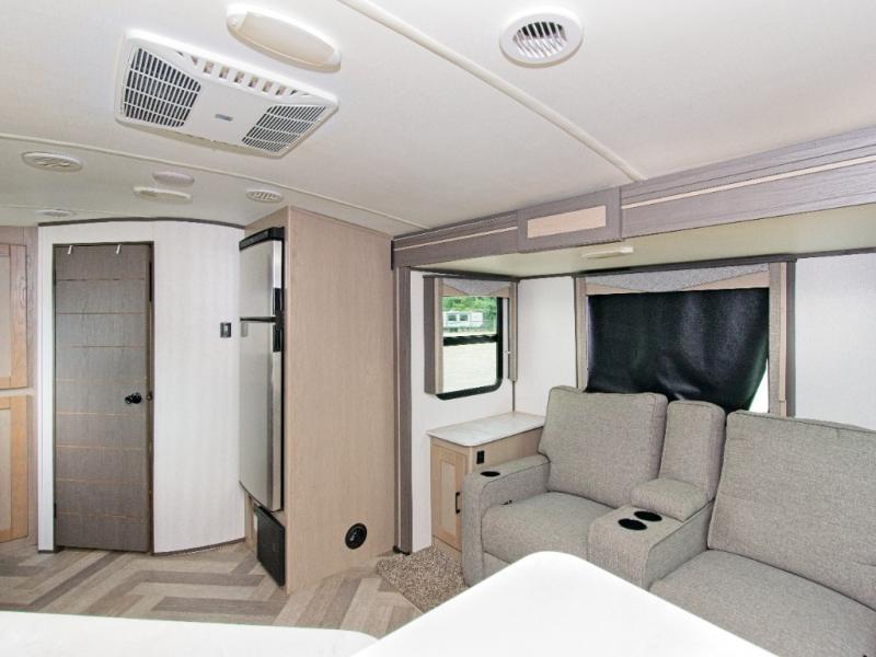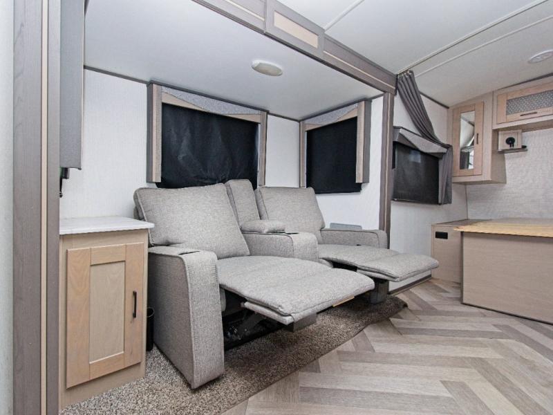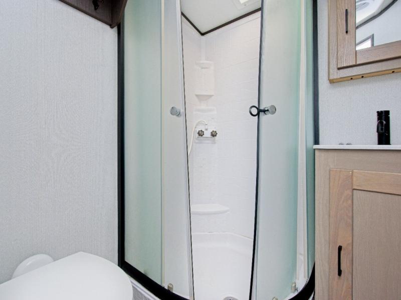 The Cruiser Twilight Signature TWS 2100 is designed for convenience and comfort on the road. One standout feature is its accessible full bathroom even when the slide-out is closed—perfect for quick stops during travel. No need to rearrange anything; just step inside and enjoy the convenience.