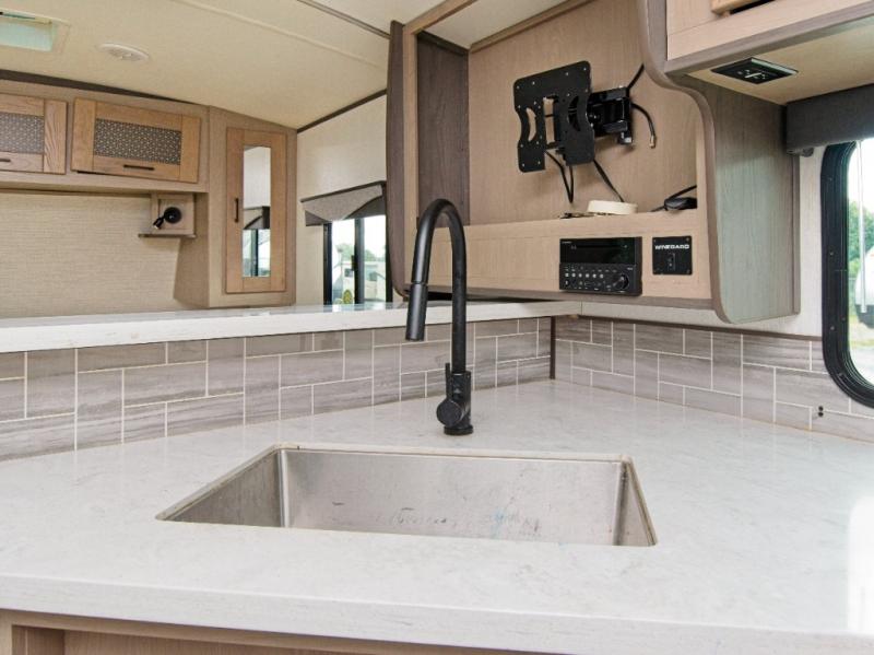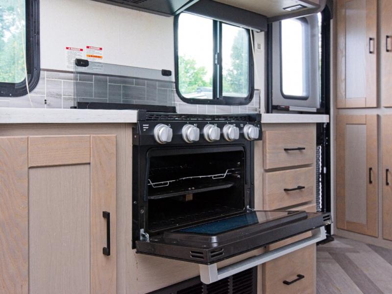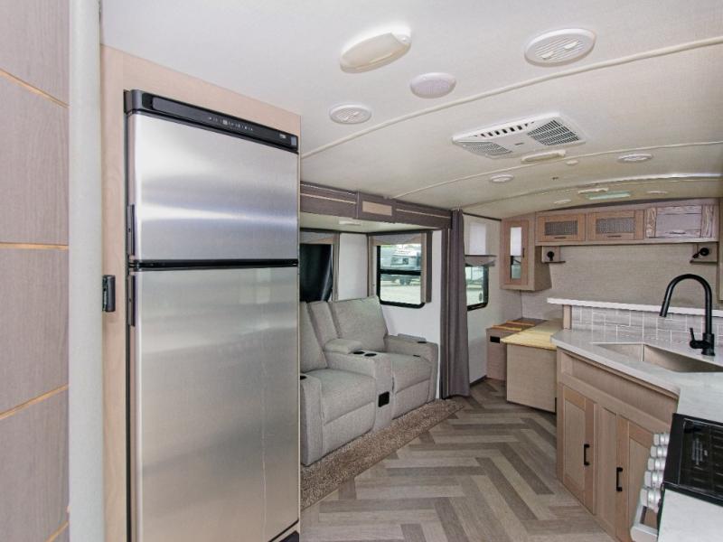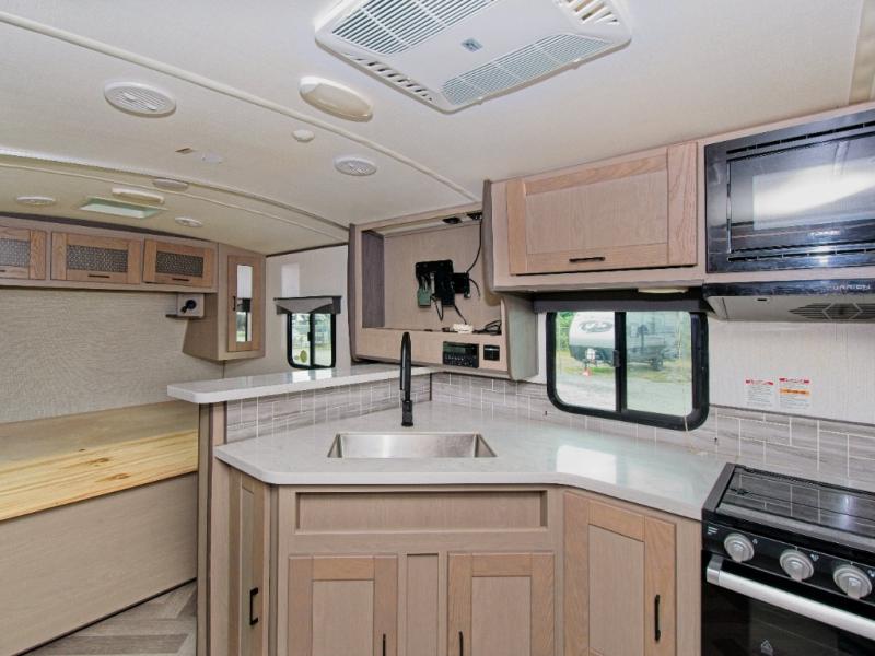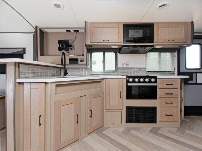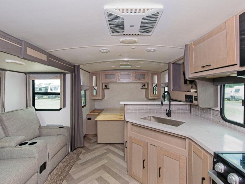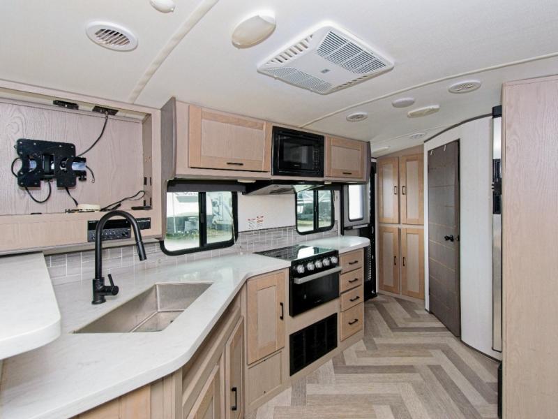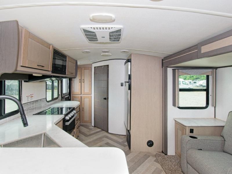 This lightweight yet luxurious travel trailer offers premium features you’d expect in higher-end models: