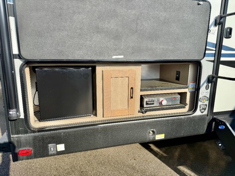 You will be quite impressed with this Twilight Signature travel trailer! There is an outdoor kitchen that will create the perfect place to host a summer barbecue, and the walk-in pantry is right next to the entry door so that you can quickly step inside to grab some extra ingredients for the meal you are preparing. On the interior, there is a large slide so that you can have extra gathering space in the evenings, and the tri-fold sofa and booth dinette can both be used as extra sleeping spaces if needed. The kitchen has everything the chef will need to prepare a hearty breakfast in the morning, and the full bathroom will keep everyone clean.