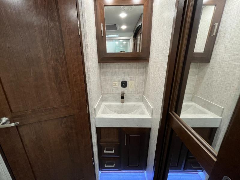 Retreat to a spacious master bedroom that delivers comfort and privacy at the end of the day. Featuring a comfortable bed, ample closet storage, and high-end finishes, this suite offers the rest and organization needed for full-time or long-term travel. The residential feel continues throughout the space, giving you a true home-away-from-home experience.