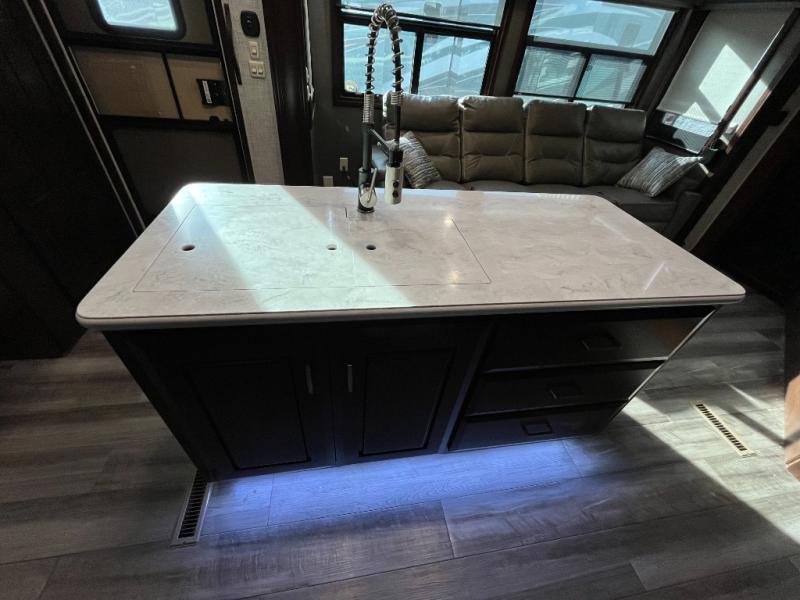 The open layout makes this fifth wheel perfect for hosting guests or enjoying quiet evenings at home on the road.