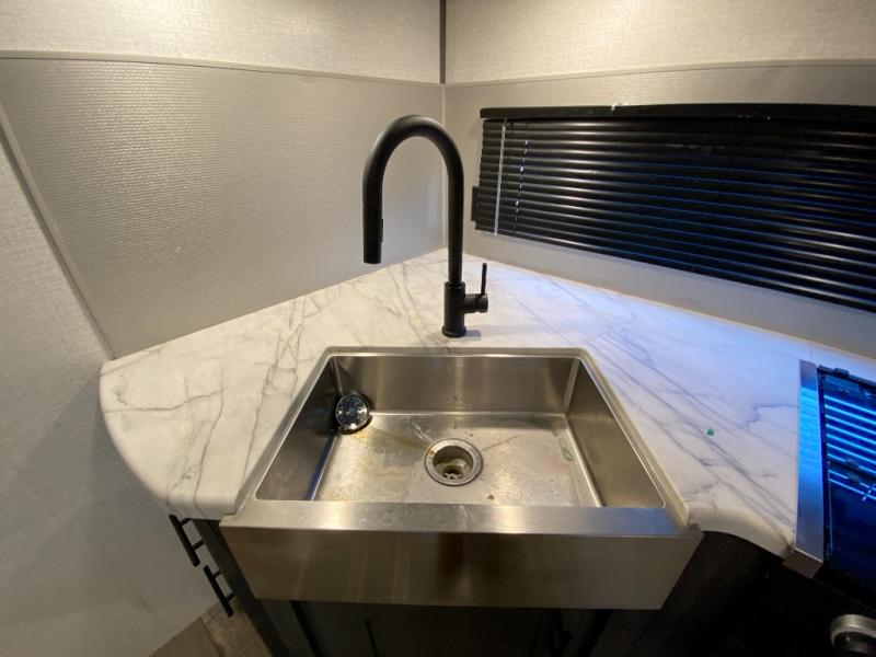 Every one of these Dutchmen RV Aspen Trail toy haulers and travel trailers are built with a durable roof structure including a TPO roof with 3/8" decking, fiberglass insulation, and a Lauan interior panel! The insulated structure consists of a metal exterior panel, a wood frame with R7 thermal insulation, and a Lauan interior panel too so you can keep the warm air in during the cooler months and the cool air in with the superior A/C cooling system during the warmer months. The heated and enclosed underbelly will keep your unit's vitals safe from the elements, and the extended long rain gutters will keep the rain away from it too. With seamless Thermofoil countertops and upgraded Beauflor lino throughout, you will feel right at home while camping in the woods!