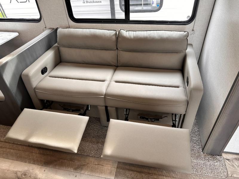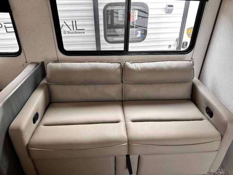 Each one of these Dutchmen RV Aspen Trail LE travel trailers will turn heads at the campgrounds! They are built with a durable roof structure consisting of a TPO roof, 3/8" decking, fiberglass insulation, and Lauan interior panel. The superior A/C cooling creates an even cooling throughout with insulated ducting. You will get more bang for your buck with more standard features for less money. The Aspen Trail LE package comes with a 120V exterior outlet which will come in very handy, mini blinds throughout for added privacy, and a high output furnace with auto ignition to keep you warm on a cool night. There is a perfect model just waiting for you to choose it!