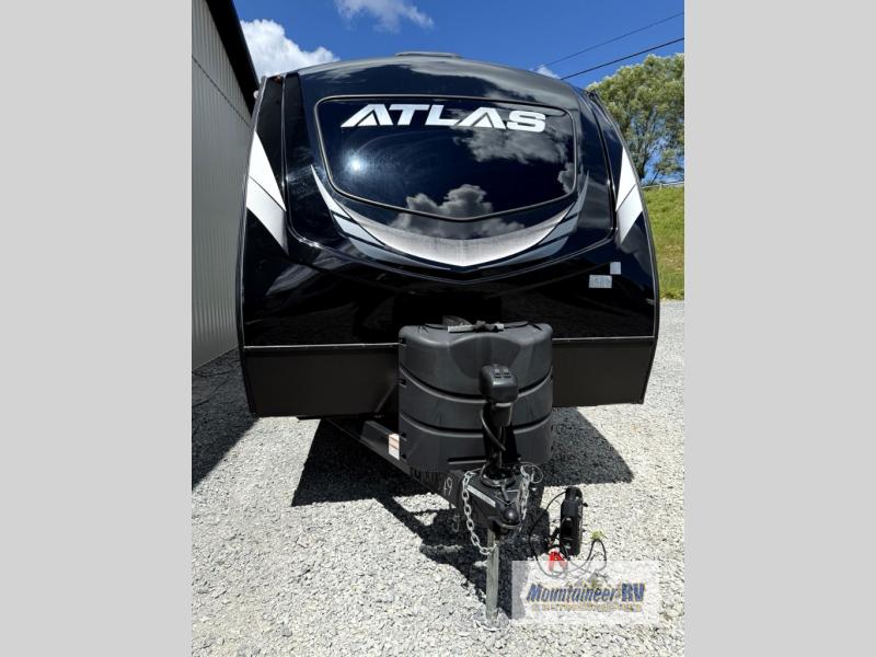 With any Dutchmen Atlas fifth wheel and travel trailer, you will have the Dutchmen construction advantage with a Hyperdeck floor structure which includes several protective layers from linoleum flooring, a steel powder coated main l-beam frame, and a full enclosed underbelly, plus vacuum bonded laminated walls, an insulated reinforced front cap, and fold down entry steps for stability that are easy to expand and store away. The travel trailers also offer a power tongue jack and power stabilizer jack while the fifth wheels offer one touch auto-leveling, power landing gear, and a roto flex pin box. The interior provides motion sensor LED lighting in the kitchen, a 30" wide fireplace in the living area, and a porcelain toilet in the bathroom, plus many more standard features and mandatory options. Make your selection today!
