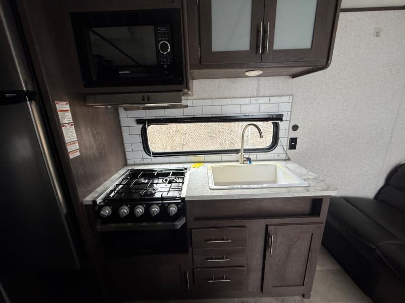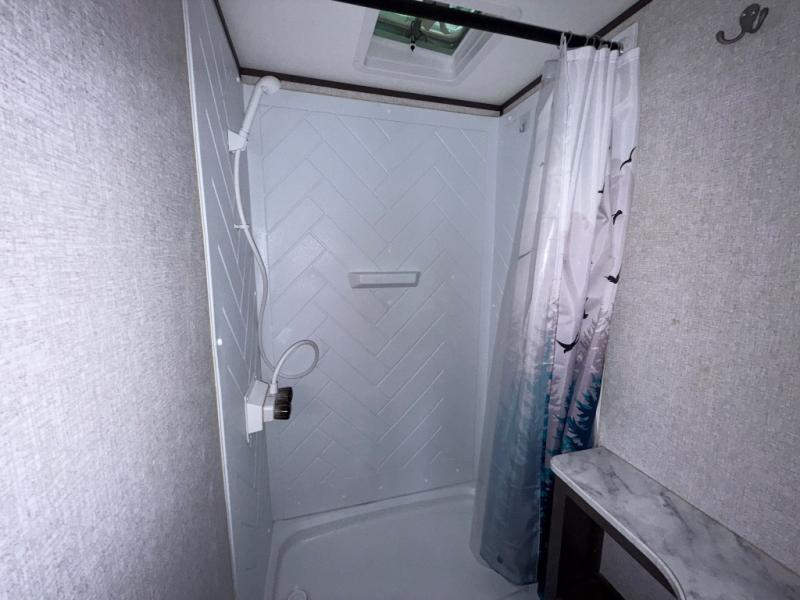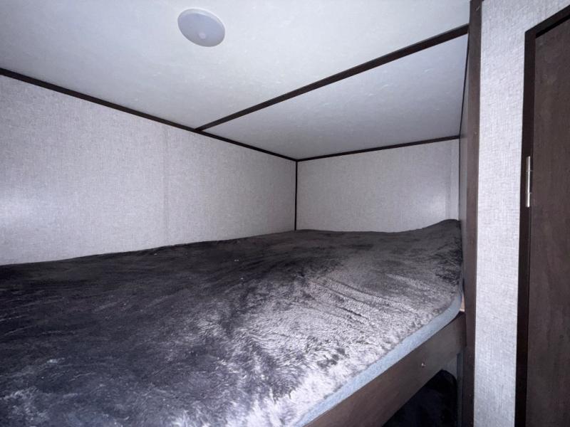 Don't let memorable and adventurous getaways pass you by! Grab this Coleman Lantern LT Series travel trailer and set out on your next great expedition. The full bathroom with its skylight will come in handy for your morning routines, and the full kitchen will give you an opportunity to make warm meals for the group. You will be amazed by the amount of sleeping choices this trailer has, enough to sleep up to eight people comfortably. The bunks will be the kids favorite, and the walk-around queen bed will be a nice oasis at night, plus the furniture doubles as sleeping space.