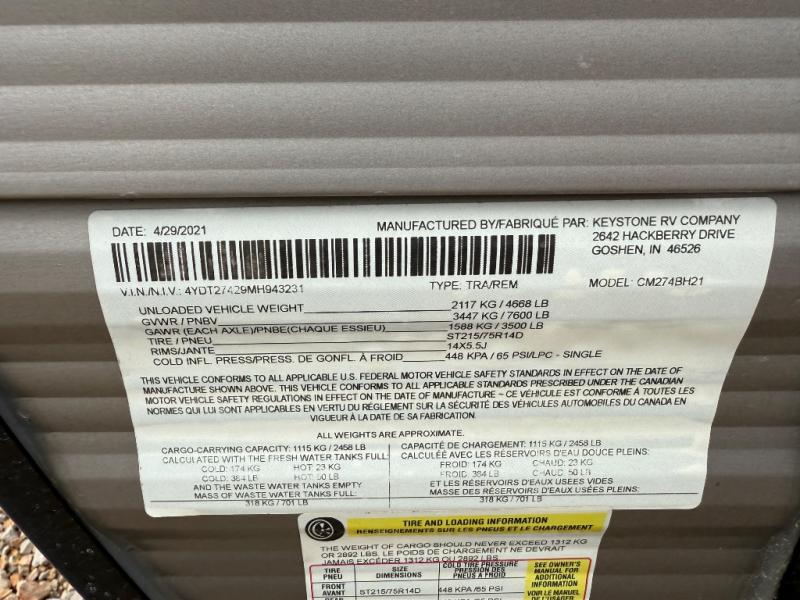 Used 2021 Dutchmen RV Coleman Lantern LT Series 274BH Travel Trailer