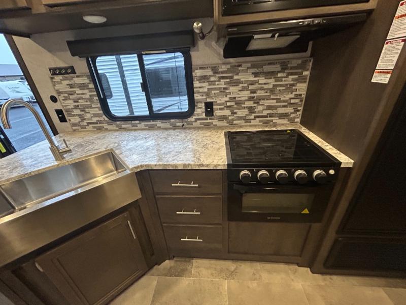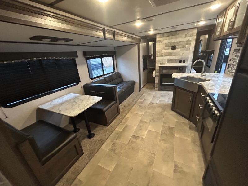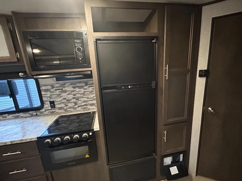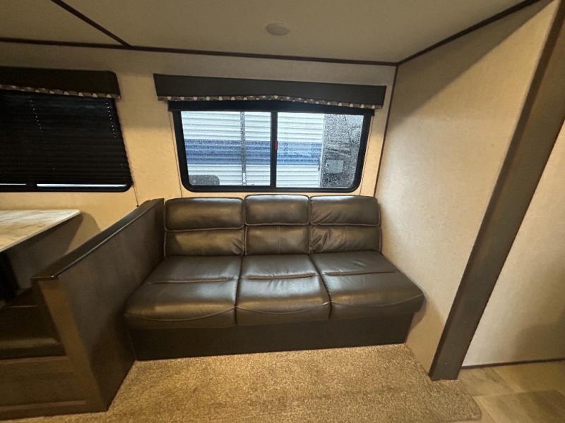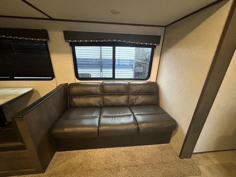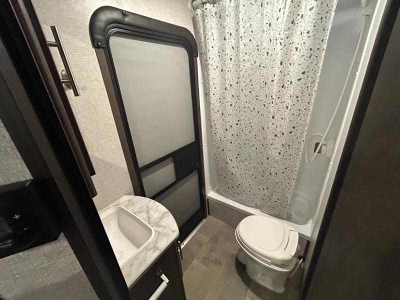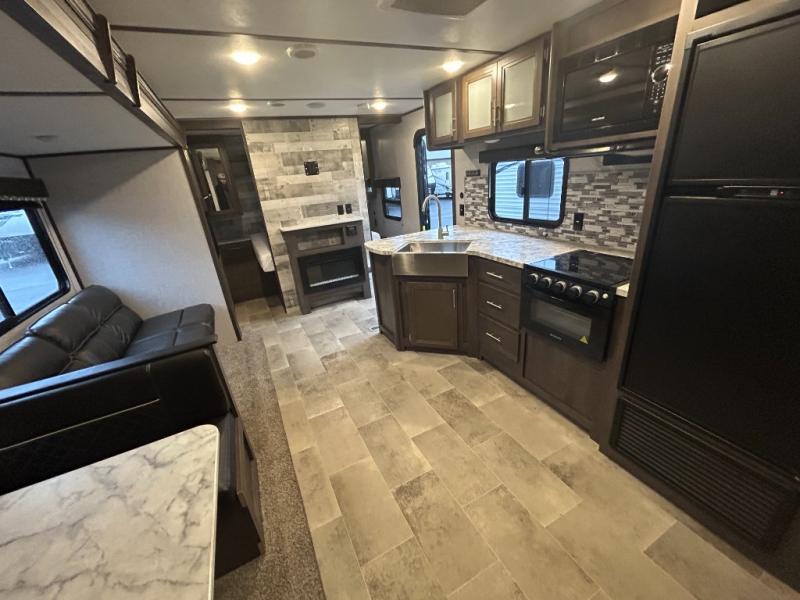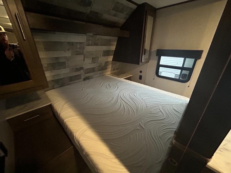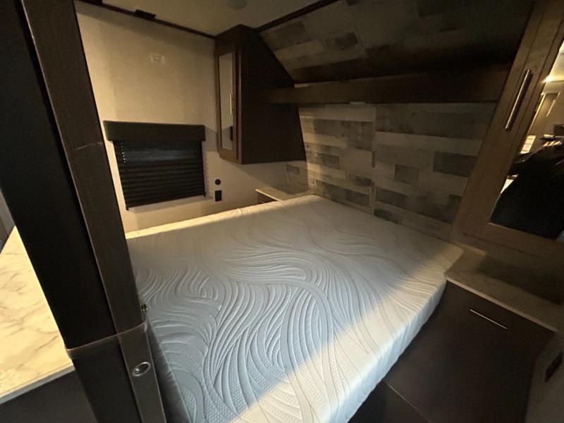 This Coleman Lantern Series travel trailer will provide you and your family with comfort and convenience while you enjoy the great outdoors. You might even meet other RV owners to camp with as well. From having your own private bedroom with wardrobe space and USB power outlet to your kids having double-size bunks, you will not be missing home at all. The cook can make meals while the others take turns getting ready in the full bathroom, and the second exterior entry door into the bathroom is a huge convenience for many reasons. Make this model yours today!