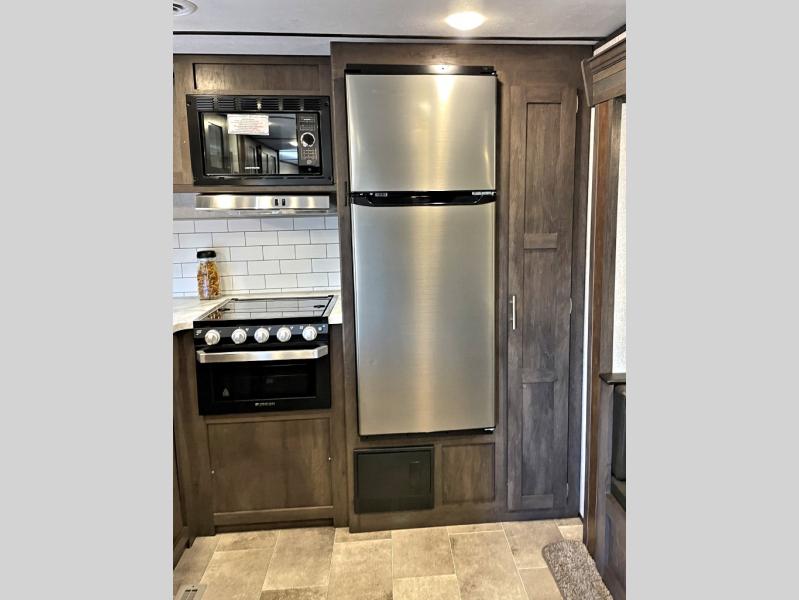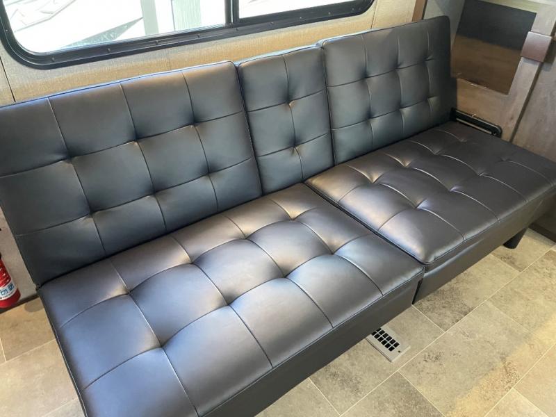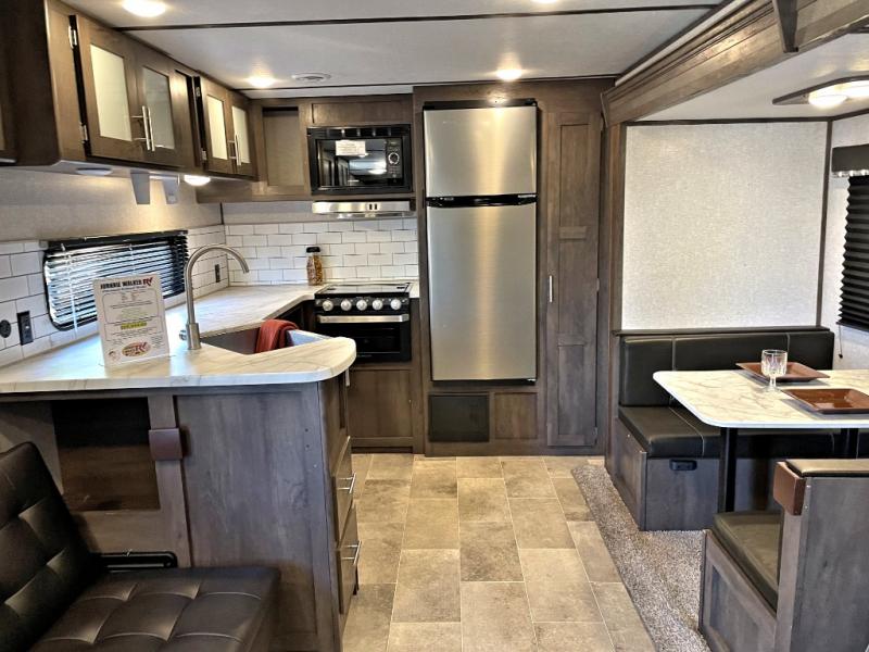 With any Coleman Lantern travel trailer and toy hauler, the Dutchmen construction advantage provides a TPO roof, fiberglass insulation, a metal exterior panel, a wood frame, a lauan interior panel plus, and the Blade air flow system which helps reduce air turbulence and noise, plus many more features for overall durable construction. Some premium features offered include power stabilizer jacks, a power tongue jack, and a fully insulated and enclosed underbelly allowing you to travel longer. Other highlights include high-capacity tanks, a stainless steel microwave, an upgraded kitchen backsplash, solar power charging connection, and much more. Start your adventure with value and comfort in a Coleman Lantern!