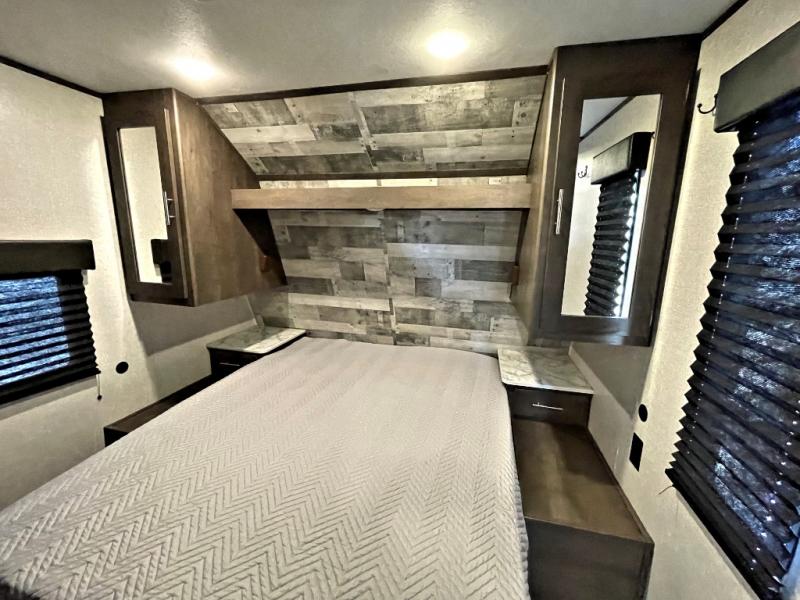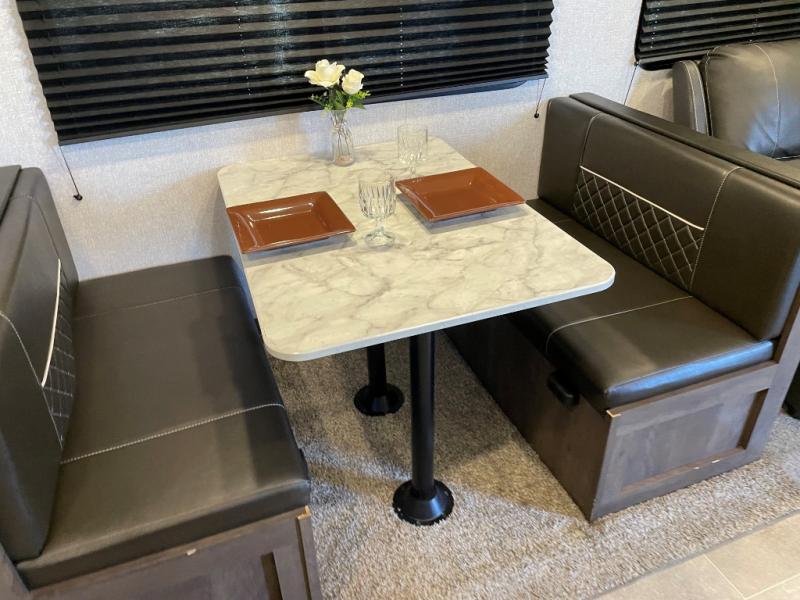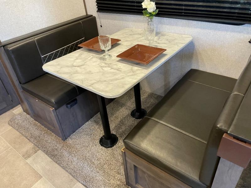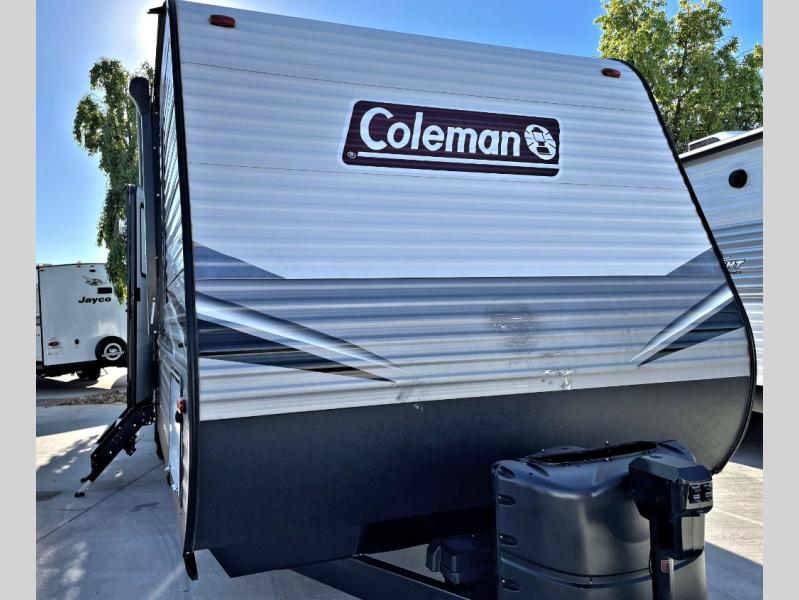 When it's time to get away, hitch up this Coleman Lantern Series travel trailer to your tow vehicle and hit the open road. You can start thinking about all the places you will explore after a good night's rest on the queen bed in your front private bedroom while the kiddos or grandkids sleep on the booth dinette or sofa in the main living area. In the morning you can drink your coffee while relaxing on one of the two swivel rockers after making breakfast for everyone. You will find storage in the EZ storage below the sofa, the overhead cabinets throughout, the dual wardrobes in the bedroom, and along the exterior so you don't have to leave anything behind.