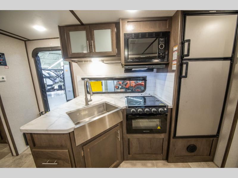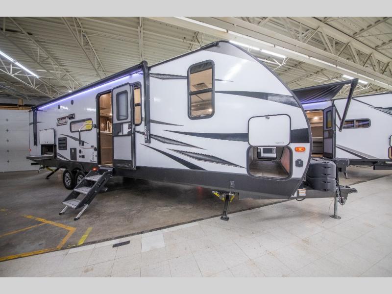 All of these Dutchmen Coleman Light travel trailers are light in weight, but heavy in premium features! They are constructed with an aluminum frame that has block foam insulation, a Darco moisture barrier, a steel powder-coated main frame, and a fully enclosed underbelly to keep the RV's vital functions protected from the elements. You will safely enter the unit each time with the secure solid step that can adjust to your campsite and offers a secure footing. The powered stabilizer jacks and power tongue jack make it easier for you to set up at the campground which means you will have more time to relax. The superior 13,500 BTU air conditioner will keep you cool even on the hottest summer days, and the LED lighting in the pass-through storage makes it convenient for you to access all of your camping gear!