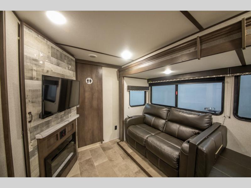 You will feel right at home camping in this Coleman Light travel trailer! The front private bedroom has a queen Rest Easy mattress for you to wake up feeling refreshed after sleeping on it and a front wall wardrobe to keep your clothes looking their best. The full rear bathroom has a shower for you to start your day feeling squeaky clean and a wooden medicine cabinet with a mirror. The three-burner cooktop is just waiting for you to create a delicious home-cooked meal, and the booth dinette welcomes you to enjoy it there comfortably, plus it has a storage compartment. The hinged entertainment center has a glass fireplace with a 5k BTU heater to keep you warm and cozy on those chilly evenings!