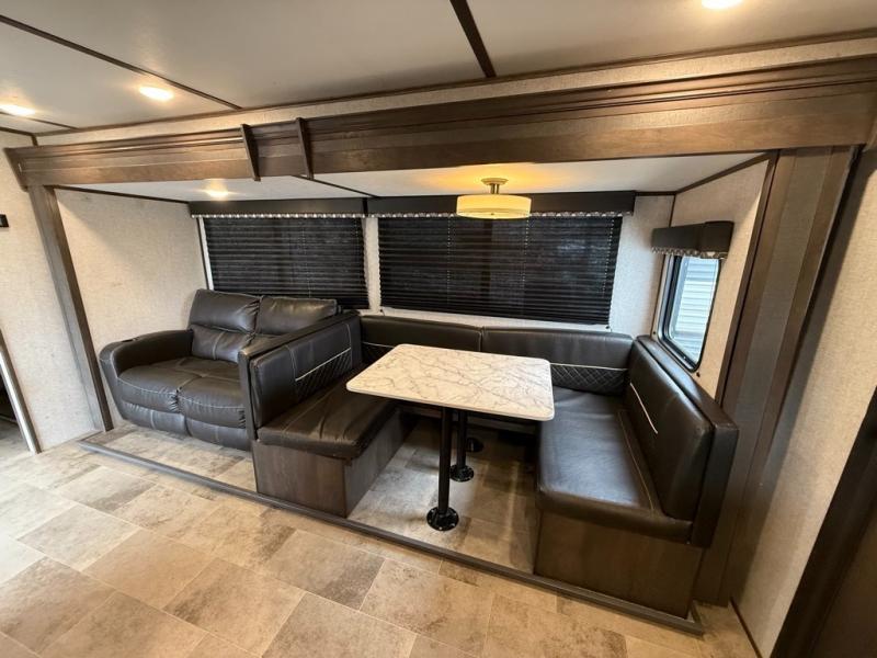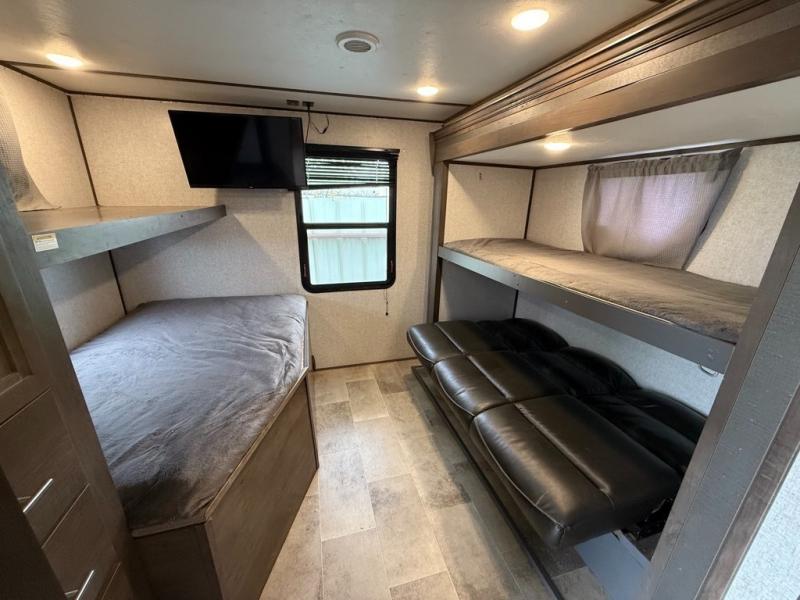 LIKE NEW 2021 DUTCHMEN COLEMAN LIGHT SERIES 3215BH, FREE DELIVERY & SETUP!! SUPER CLEAN. IS A RV LOADED WITH LUXURY!! 37 LONG. 2 PRIVATE BEDROOMS, 2 XL SLIDES. COLD A/C. QUEEN MASTER SUITE. PRIVATE REAR 3 BUNKS. DINETTE & A SLEEPER SOFA. FRONT PRIVATE BEDROOM. LARGE LIVING AREA WITH THEATER SEATING & TRIFOLD SLEEPER SOFA. ELECTRIC FIREPLACE & BIG FLAT SCREEN TV. BEAUTIFUL KITCHEN with residential refrigerator, STAINLESS STEEL APPLIANCES, and LOTS OF CABINET STORAGE. 4 SEASONS PACKAGE WITH UPGRADED INSULATION. ALL FIBERGLASS DESIGNED FOR YEAR-ROUND COMFORT IN HOT OR COLD CLIMATES. COLD A/C UNITS. 50AMP POWER. OUTDOOR STORAGE. OUTDOOR KITCHEN, SOLID STEP ENTRY. DUAL AWNINGS WITH LED LIGHTS. LUXURY FEEL THROUGHOUT!!