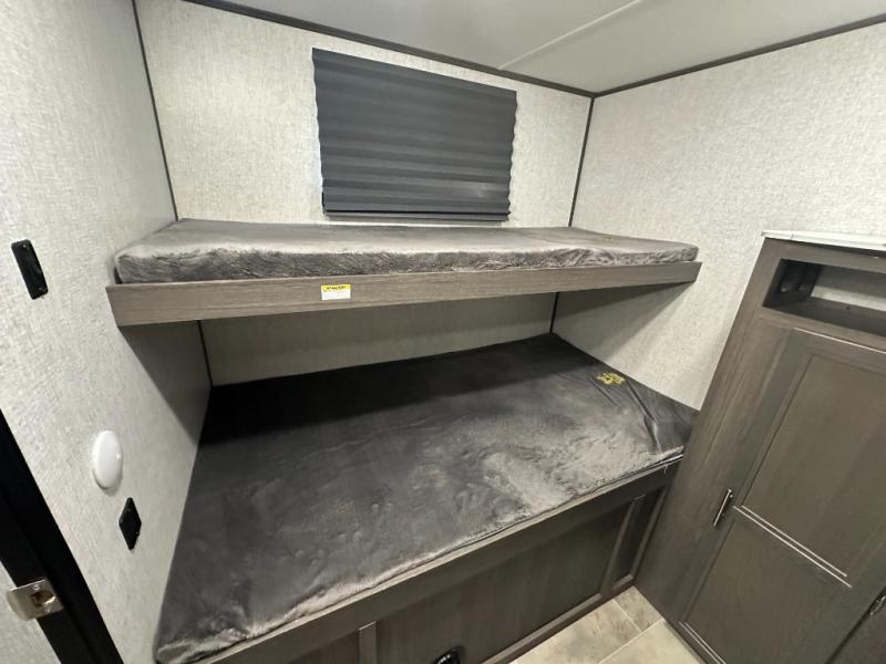 Rear Bunkhouse, Front Private Bedroom, Power Tongue Jack, Solid Steps.