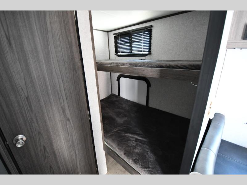 If you have been dreaming about exploring state parks and viewing majestic mountains, but you wish you could take the comforts of home with you, then you need this Kodiak Cub travel trailer. You will enjoy having enough sleeping space for five people, and you will certainly appreciate having your own private toilet and shower room so that you don't have to search around for a clean facility while away from home. The queen bed will provide plenty of comfort and relaxation each night, and the bunk beds will be an exciting place for the kids to drift off to sleep. The Pack-n-Play door is a handy addition to this trailer, and it allows you to pack your bikes or larger camping essentials more easily.