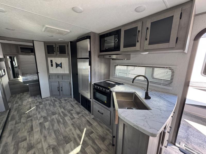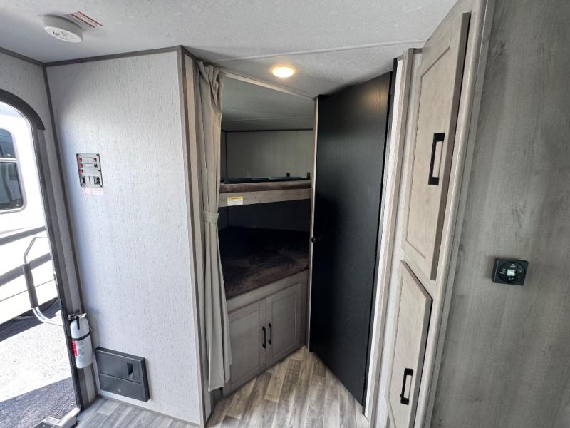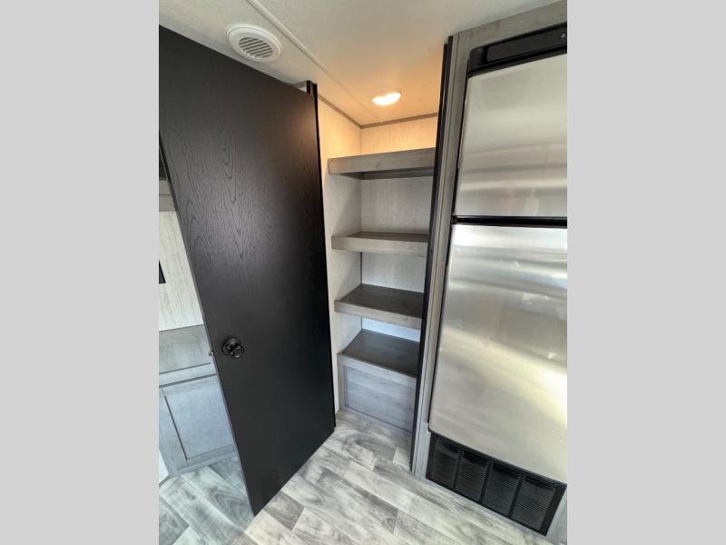 Camping with the comforts of home just sounds more fun! With this Kodiak Ultra-Lite travel trailer, you will have your own bedroom with the second exterior entrance and a residential queen bed while the kiddos or guests have their own double-size bunks next to the full bathroom. The cook will love being able to make meals outside while watching the kids or visiting with other RVers, and they also have enough appliances within the full interior kitchen to even make a holiday meal. The large slide out has a U-shaped dinette and sofa for a dining area, a game-playing headquarters, and sleeping space for friends. You will also find plenty of storage for all your things with the pantry, overhead cabinets, dual wardrobes, and an exterior pass-through storage!