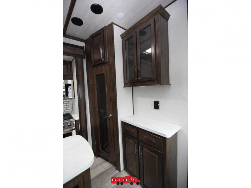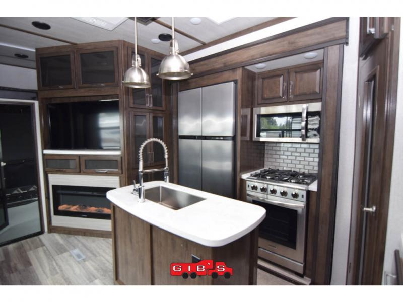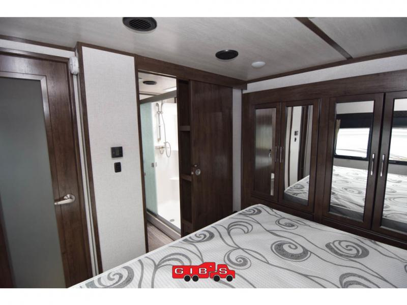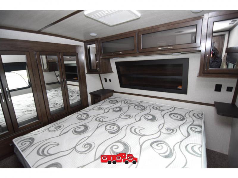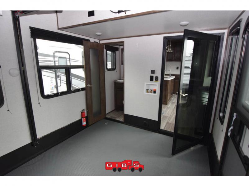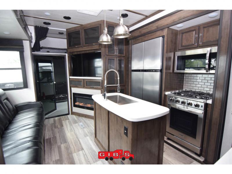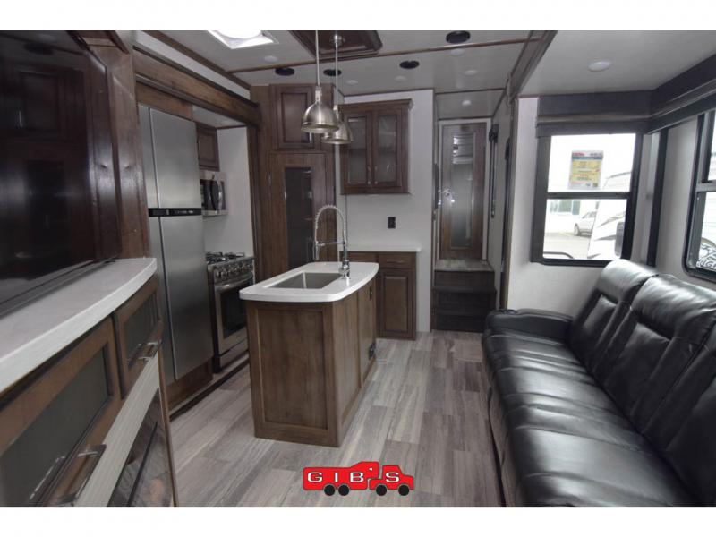 You will be extremely impressed by the amount of luxury found on the Dutchmen Voltage fifth wheel toy hauler! Some of the premium features that you will find on the Voltage are the Zero-Gravity ramp door that lets you access your toys with very little effort and the king-size bed which offers you extra space for sleeping comfortably. The Voltage also has industry-leading 7'-tall slides so that you can feel free to stretch your legs while inside. The ramp door patio system is certainly going to be an appealing factor because it provides you with an extra party space, and the dedicated heat ducts for the underbelly and the All-Weather Package with additional insulation will ensure that your Voltage is protected and prepared for all sorts of weather.
