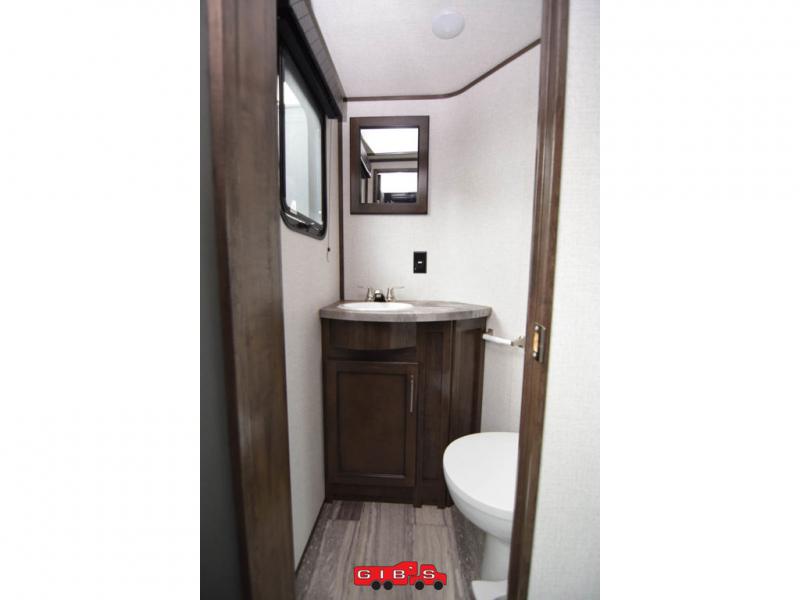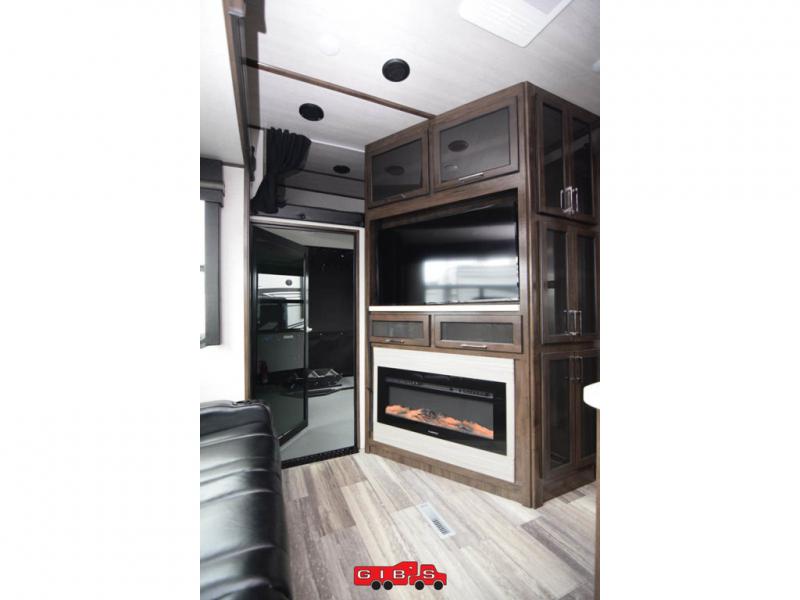 You will thoroughly enjoy spending most of your summer traveling with this Voltage toy hauler! There is plenty of sleeping space with the king-size bed, power bunk, twin-size loft, and opposing sofas so that you can bring along a couple of friends, and with a full and half bathroom, you can provide everyone with an easy way to get clean. This unit includes some great modern features, like a fireplace, exterior entertainment center, 18-cubic foot refrigerator, and 30-gallon fuel station. It also has extra storage space with an exterior pass-through storage compartment, and the opposing slides in the main living area will be helpful for providing enough room while you cook or relax.