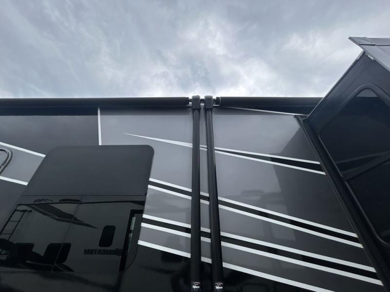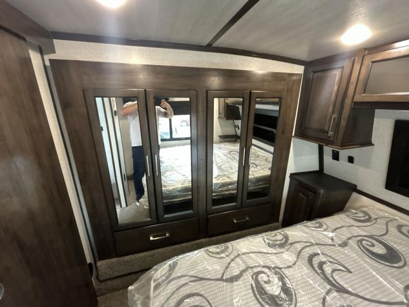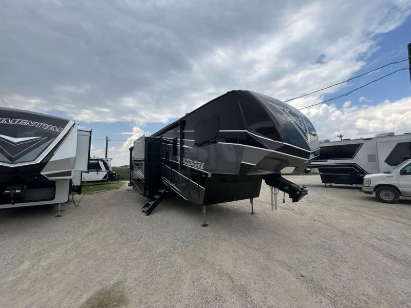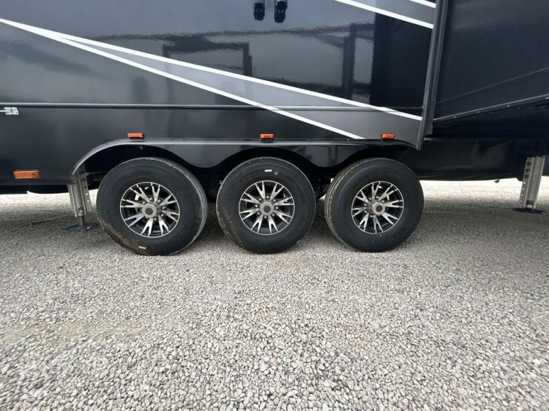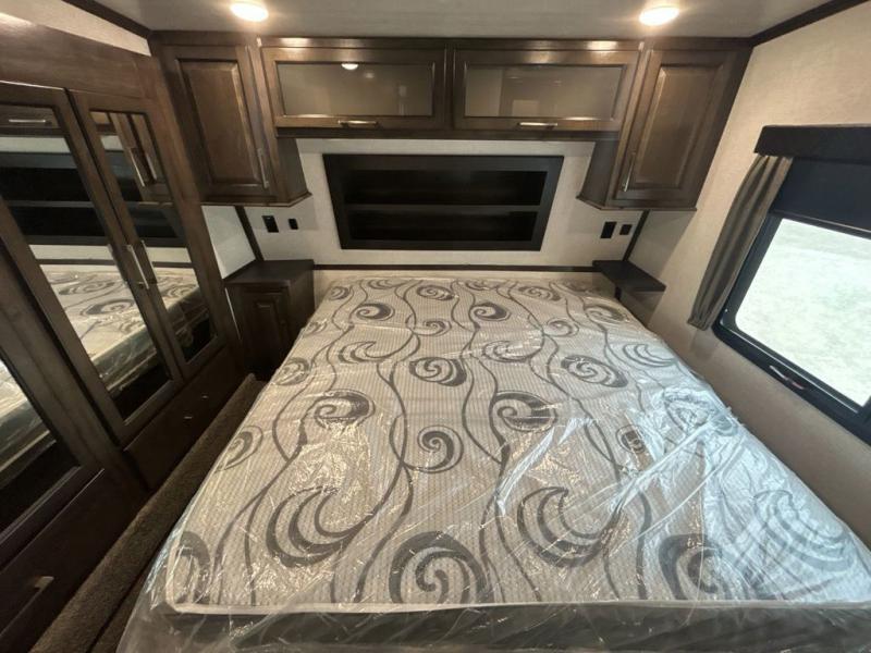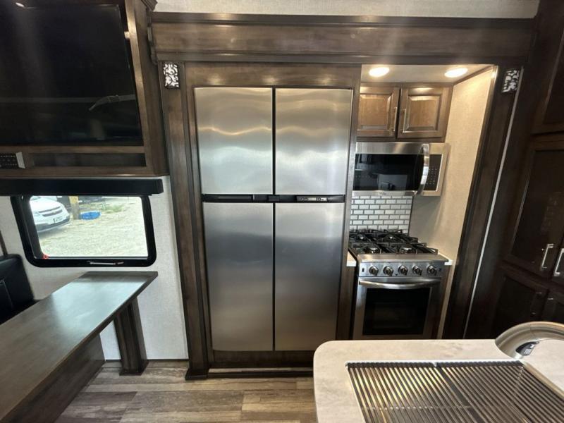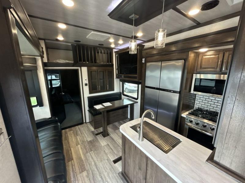 You will be extremely impressed by the amount of luxury found on the Dutchmen Voltage fifth wheel toy hauler! Some of the premium features that you will find on the Voltage are the Zero-Gravity ramp door that lets you access your toys with very little effort and the king-size bed which offers you extra space for sleeping comfortably. The Voltage also has industry-leading 7'-tall slides so that you can feel free to stretch your legs while inside. The ramp door patio system is certainly going to be an appealing factor because it provides you with an extra party space, and the dedicated heat ducts for the underbelly and the All-Weather Package with additional insulation will ensure that your Voltage is protected and prepared for all sorts of weather.
