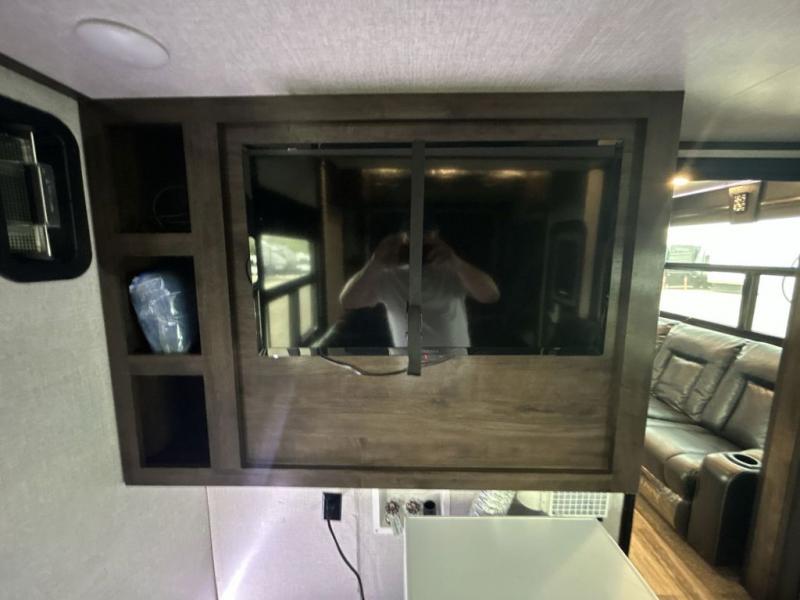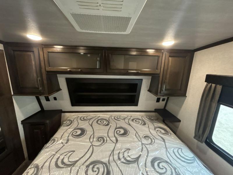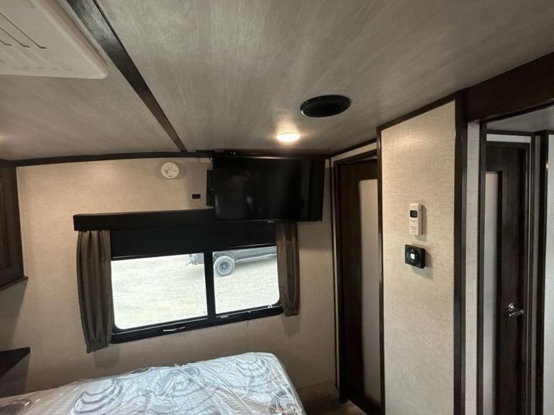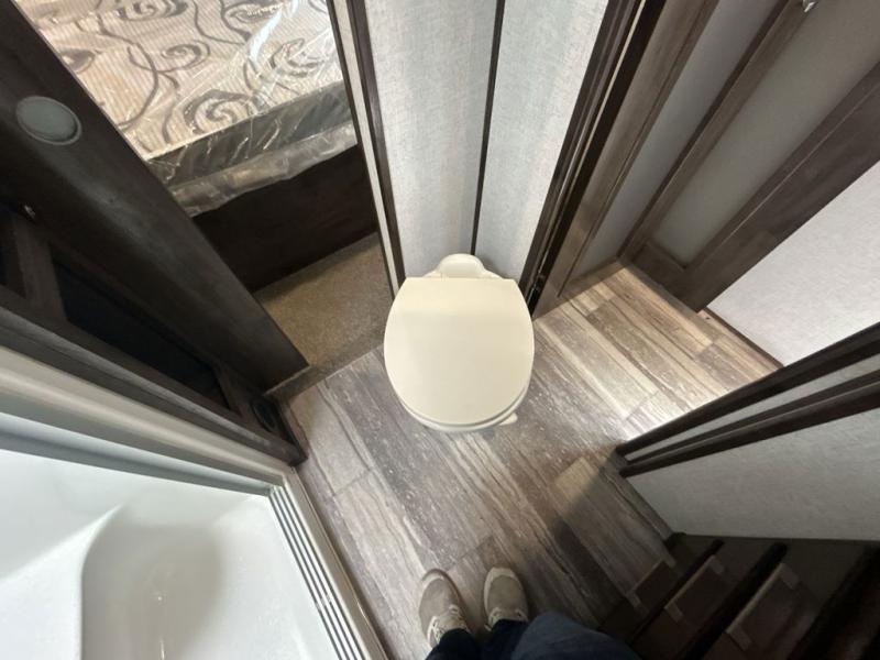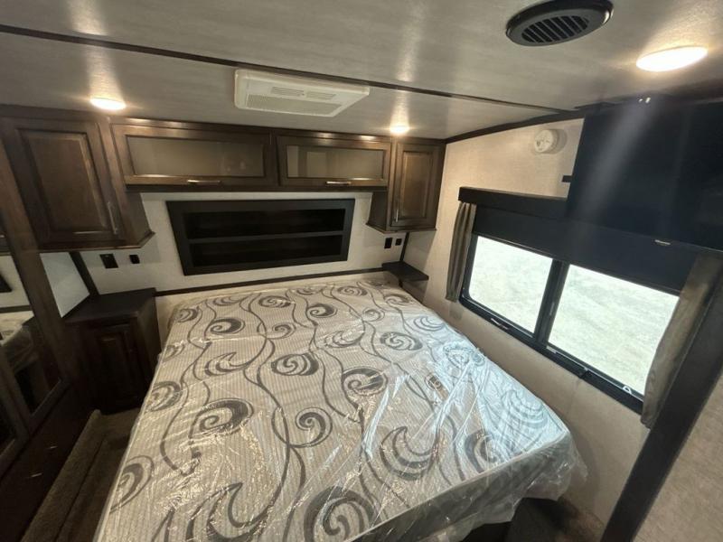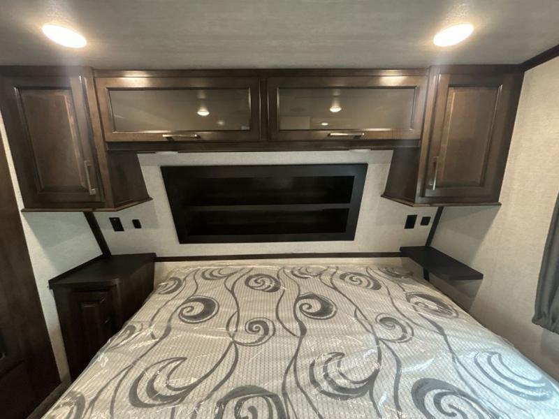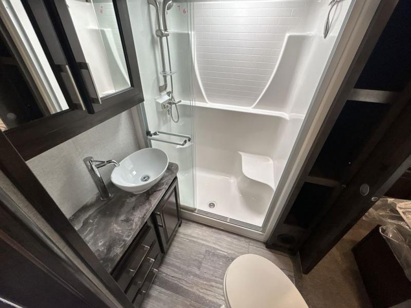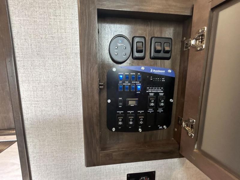 You will be extremely impressed by the amount of luxury found on the Dutchmen Voltage fifth wheel toy hauler! Some of the premium features that you will find on the Voltage are the Zero-Gravity ramp door that lets you access your toys with very little effort and the king-size bed which offers you extra space for sleeping comfortably. The Voltage also has industry-leading 7'-tall slides so that you can feel free to stretch your legs while inside. The ramp door patio system is certainly going to be an appealing factor because it provides you with an extra party space, and the dedicated heat ducts for the underbelly and the All-Weather Package with additional insulation will ensure that your Voltage is protected and prepared for all sorts of weather.