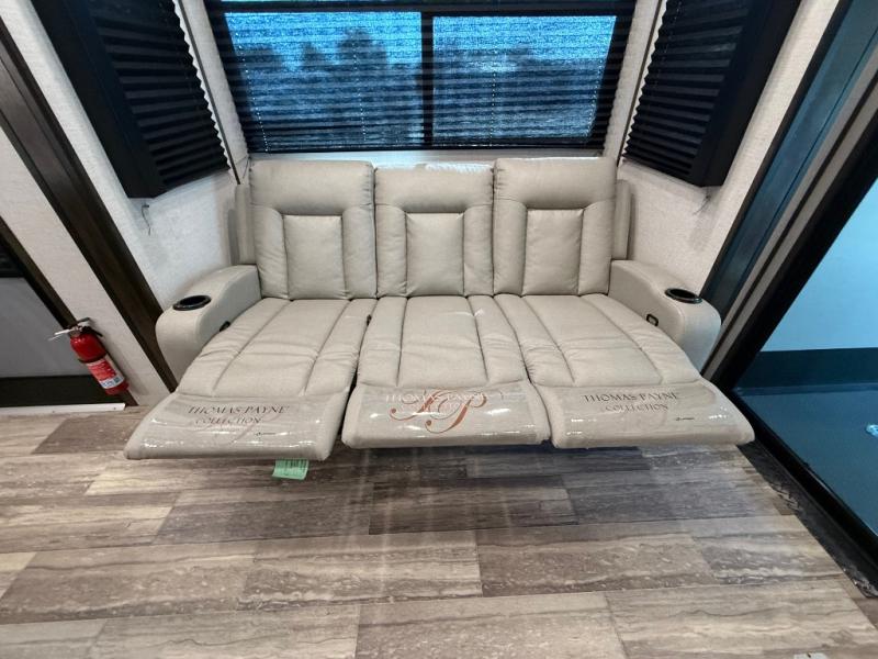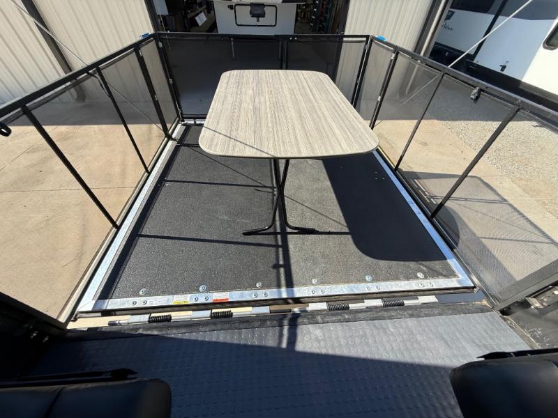 Traveling with your family or your adventure buddies will be easy when you are towing this Voltage Triton fifth wheel toy hauler behind your truck! You will enjoy garage space that you can easily access via the rear 8' ramp door with spring assist. There is even access from inside the living area through a glass door if you like. The garage offers a lay-flat Happi-Jack power bunk with dual sofas and a table beneath, plus there is a twin-size loft overhead and a convenient half bath as well. Enjoy the convenience of a full kitchen for meals and a comfy king-size bed in the front master suite. Add the rear optional patio awning onto the ramp door and create a whole new way to enjoy the outdoors!