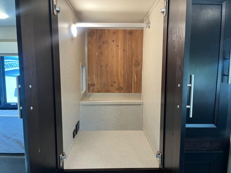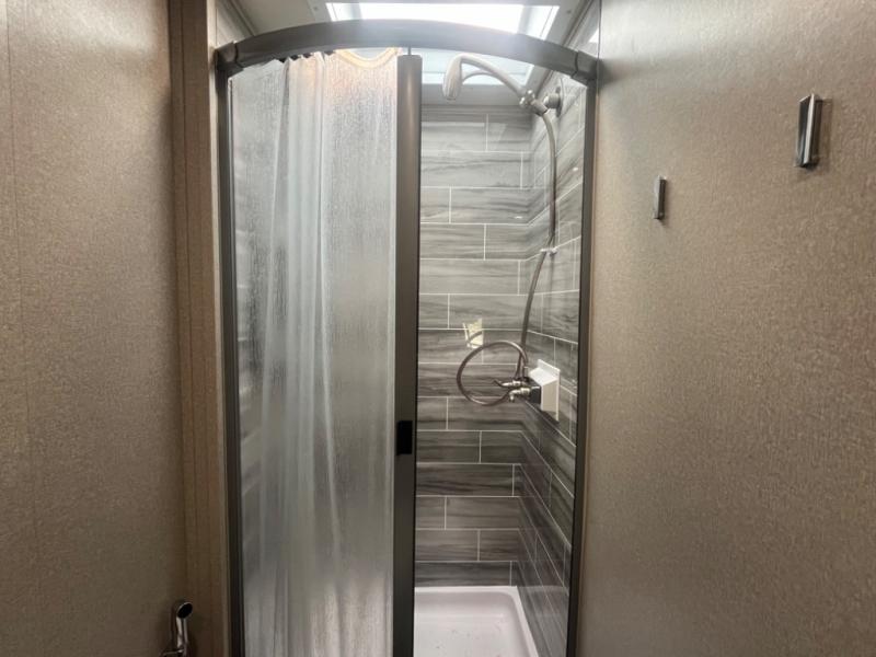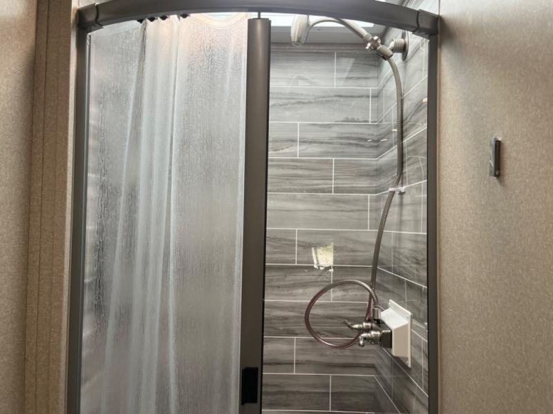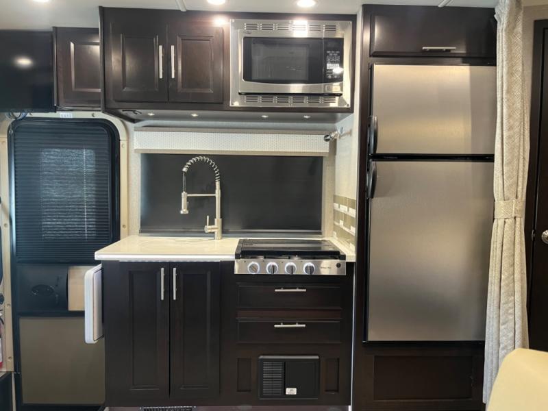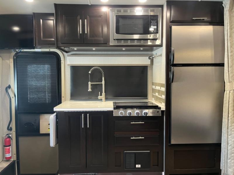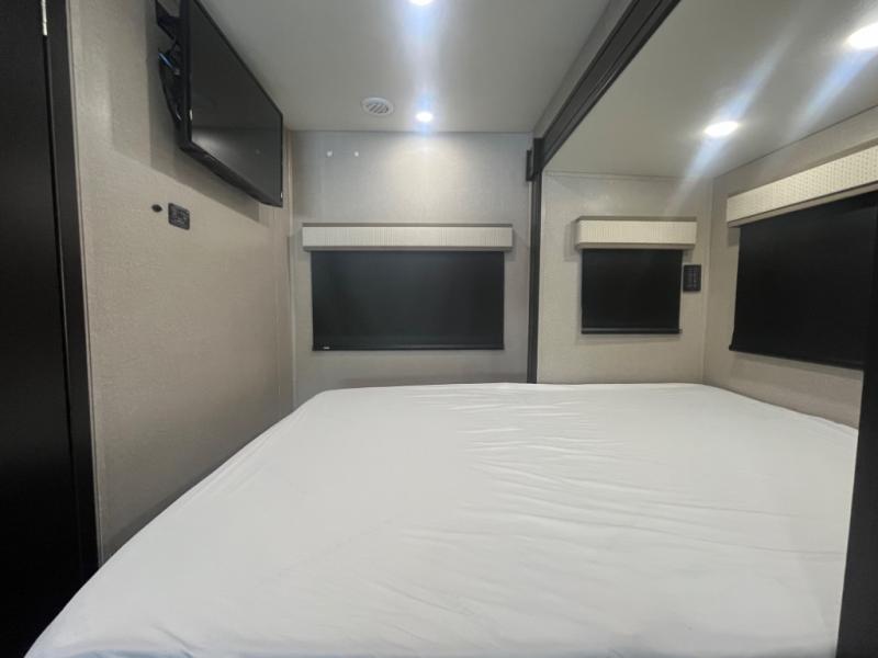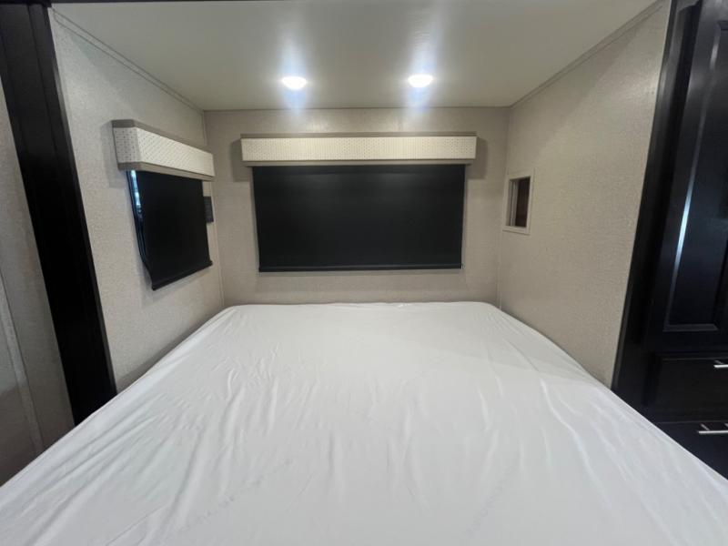 This 24FW Class C diesel motorhome gives you the luxuries of home while traveling on the road! The full wall slide out helps to really open up the interior when you are parked. When you aren't enjoying a meal or playing a card game at the booth dinette, you can head to the rear and relax on the gel-infused memory foam queen-size bed while you watch your favorite movie on the 32" LED TV. You won't have to leave anything behind either thanks to the exterior storage area, the underbed storage, and the overhead cabinets throughout the inside. You're going to love getting clean in the rear corner bathroom with the Oxygenics body spa RV shower head and the residential vanity with a stainless steel sink provides the perfect spot for you to get ready!