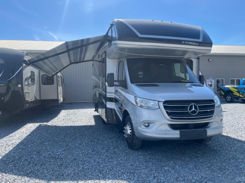 You will find that each one of these Dynamax isata 3 Class C diesel motorhomes are different by design with dark-tinted frameless windows, an aerodynamic fiberglass front cap with cab-over cabinets, and full body paint packages with a front-end diamond shield. Each model is built with a Mercedes-Benz® Sprinter chassis, the Truma® Aqua Go Comfort™ on-demand water heater, and MaxxAir® power vents so you know you're getting an efficient motorhome. You can be sure to have a peace of mind while you travel thanks to the aluminum truss structured roof with a crowned, one-piece fiberglass skin. Start doing things different with one of these Dynamax isata 3 Class C diesel motorhomes today!